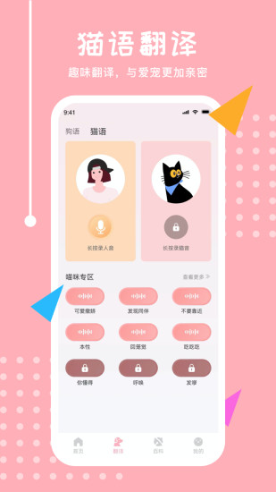 【宠物交流器】聆听狗狗的心声,获得猫咪的注意,如果你想要和你的爱宠更加亲近,就来试试这款宠物翻译~它会将你的声音进行音频分析,并根据你的语音复述模仿猫狗叫声,还自带多种宠物叫声的音板,轻松与你的宠物进行交流~ 【宠物相册】陪伴宝贝的每一个瞬间,相信你都想记录下来,可是手机内存不够,照片舍不得删除怎么办?那当然是放在宝贝专属的相册里呀~随时随地都可以添加,记录下宝贝的精彩成长~ 【体重/病例/疫苗记录】宝贝是不是有在健健康康的长肉肉呢?你还记得宝贝的病史吗?上次驱虫/疫苗是什么时候做的呢?害怕忘记耽误了宝贝的健康情况,那就记录下来,随时都可以查看宝贝的情况,有异常及时发现~