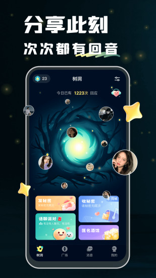 在这个世界上,有很多人和我一样,不是引人瞩目的幸运儿。 我们是人群中的小透明, 我们有很多话想讲,但却总也没人来问, 我们害怕社交的压力,宁愿选择自己承受孤独, 我们习惯着伪装合群,总是因为照顾别人情绪而小心翼翼, 渐渐的,我们学会了忍耐,却不曾想根本没人赞颂沉默。 我们也渴望陪伴,渴望被关注,可我们害怕陪伴带来的压力,害怕关注带来的目光。 回音提供纯匿名的社交方式,你可以完全放飞自我,可以随性倾诉生活的日常。 在这里你总能碰到与你兴趣相投的人,让你体会与人分享的愉悦,却又没有社交压力。 如果你也有无处诉说,却不愿藏匿的心事,就把它放进树洞里吧。你的每一次发声,都会被温柔对待。 功能介绍: 「温暖树洞」 向树洞分享你的想法,即刻便能收到回应,满足你的分享欲。 「匿名社交」 树洞遇见的人,都是匿名状态,没有年龄、外貌、身份的压力,让我们用灵魂遇见彼此。 「记录生活」 无压力记录生活瞬间,表达真实的自我,只有同频的人才能看到。