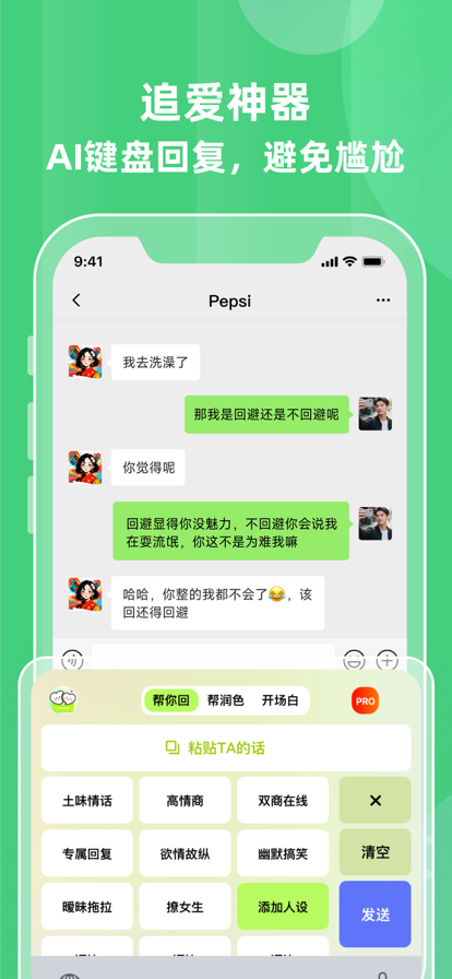 爱帮主专注于AI智能聊天对话话术生成,教你轻松学会和异性聊天,40W+超全聊天话术库,套路惯例、聊天模板、撩妹话术,长期更新让你快速脱单,不会聊天,不会回复只需复制对方语句搜一搜,众多精彩回复可供选择,复制黏贴即可追到自己心仪的对象!AI情话键盘输入法小助手帮您迈出社交第一步,社恐人士的好助手! 女生说你情商低? 异地恋如何维持? 被动分手不知道如何挽回? 想要认识更多高分女生? 不知道怎么跟异性聊天? 如何和心仪的男神愉快的聊天? 下载爱帮主-高情商恋爱聊天话术回复神器,必备谈恋爱对话话术库,统统帮你解决! 【功能介绍】 40w+恋爱话术:搜索对方的话,一键复制粘贴即可轻松追到对方,支持微信、QQ、陌陌、探探一键复制粘贴,快捷方便,堪称聊天回复神器。 AI情话键盘:高效回复,无需切换,多种智能回复生成类型一键切换 专属AI情感老师:输入对方的话,情感老师会教您如何回答的哦 强大全面的情感百科:人性化的分类了各个感情阶段遇到的问题,给出专业的解决办法 聊天技巧:众多聊天技巧、话题,高情商聊天不再困难 10w+土味情话:海量风趣土味情话,好玩的情话梗,情话宝典,恋爱密语,巧妙解决尬聊话题 2w恋爱实战案例:丰富恋爱聊天案例随意查阅,吸取前人经验,让您少走恋爱弯路。 5w+精美头像:精美独特的情侣头像,卡通头像,动漫头像,萌宠头像,唯美头像以及搞怪头像,总有一款适合你。 上万藏头诗与表白诗集:表白的话语藏在开头,有爱的表白增加成功率! 【产品特点】 1、丰富的恋爱干货,海量的精选恋爱技巧、恋爱教程 2、一键情话生成,暖心祝福图案,俘获女神的芳心 3、超多恋爱话术,让您的感情更进一步 4、多种实用文案小功能,提升您的文采内涵 5、内容丰富有趣,海量的话术供您搜索,帮助您解决与异性聊天中遇到的各种困惑 6、输入对方对话,即可输出多种巧妙恢复,支持一键复制,全局搜索 爱帮主专注高情商沟通,教你学会多元化对话技巧的app,一款让你提升自己的内涵修养和对方好感度的应用软件! 自动订阅条款: 1、订阅费用会在用户确认购买时从 iTunes 账户扣除,连续包周(¥28/周)、连续包月(¥68/月)、连续包季(¥98/三个月)、连续包年(¥198/年)、永久会员(¥298); 2、用户可在当前订阅结束 24 小时前关闭自动续订,否则将自动续订; 3、自动续期订阅的 Apple ID,会在每个账单周期到期前24小时,自动在iTunes账户扣费并延长相应有效期; 4、用户对订阅服务进行管理,即购买后可以前往用户账户设置关闭自动订阅。 用户协议: https://qhapi.tayunyx.com/zc/aiqhxy.html 隐私政策: https://qhapi.tayunyx.com/zc/aiqhprivacy.html 自动续费协议: https://qhapi.tayunyx.com/zc/aiqhdy.html