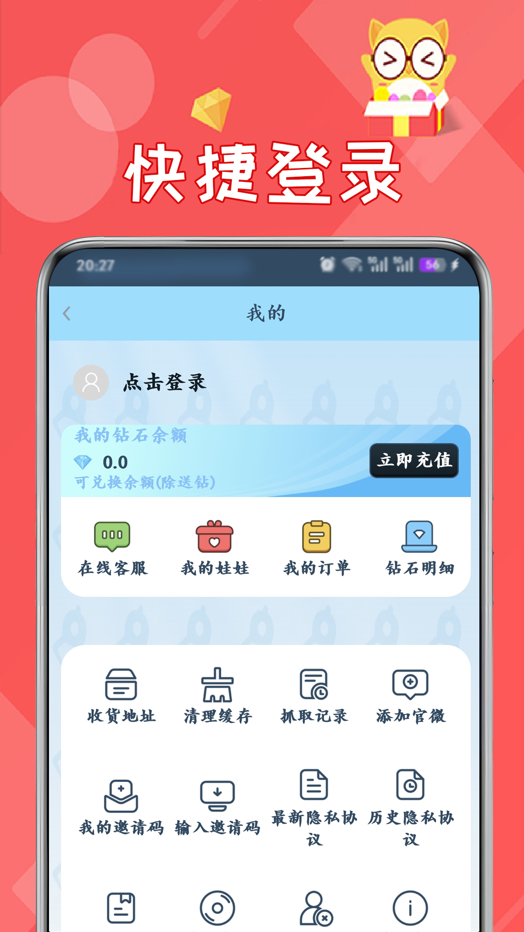 在线抓娃娃,是你休闲娱乐打发时间的不二之选,手机免费线上夹娃娃机,集合众多人气公仔手办、生活好物,上新步伐从未停止<br>高清强力抓带给你走心抓取率,多重玩法区机畅享全新抓取乐趣,登录福利天天派送,邀请好友互领超值奖品 !<br>【巨多品类 上新不断】 限量公仔手办,精品盲盒扭蛋、Gund系列、loz积木、海贼王手办,line系列台灯水杯 , 满足你的少女心 ,热血梦<br>【高清强抓 欧气满满】融入高清专区、保夹体系,让你每一次下爪抓中概率up up !<br>【玩法专区 全新乐趣】独辟多重玩法房间,畅享抓取新意<br>【支持到家 极速收货】完善物流系统,静待萌物上门<br>【积分好物 在线兑换】实用数码 精品美妆等你兑换