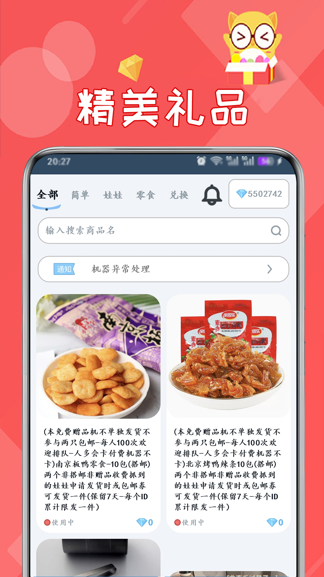 《一分钱抓娃娃》2台机器一分钱都不要免费玩,新人送50币,加客服再送20钻,标有“简单”的机器好抓,不少是一元一次的,大家找找。我们比线下好抓,因为我们不要店面租金;我们什么都可以抓,我们24小时都可以抓,我们不出门就可以抓。<br>【客服多】客服送币手把手教你,直到抓中娃娃。<br>【福利多】新用户送50币,加官微送20币,邀请好友奖、好友充值奖、好友抓中奖。<br>【机器多】简单的机器明确标“简单”不坑人,无挡板机、甩爪机、满爪满力机、超大变形金刚。<br>【商品多】500个商品包含娃娃、零食、盲盒、家电、日用品、美妆什么都有。<br>【积分多】海量产品真正超值兑换<br>【包邮多】每日发货,包邮到家(偏远地区需要补贴部分邮费)