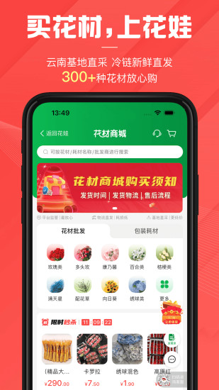 花娃-鲜花全产业链服务平台 花娃是专注于鲜花行业的在线服务平台,为鲜花爱好者和从业者提供便捷、高效的服务体验。 接单便捷,服务周到 1. 平台每天处理大量线上订单,用户可轻松上网接单。 2. 实时推送全新订单信息,支持一键抢单操作。 3. 与多家配送服务商合作,实现快速一键配送。 4. 完成订单即时结算,确保资金流转无忧。 转单高效,管理智能 1. 提供全平台订单管理工具,帮助用户快速导入并处理订单。 2. 智能系统优化订单流程,平均接单时间大幅缩短。 3. 实时监控营收数据,让业务运营更加透明化。 采购优质花材 1. 直接从昆明发出新鲜花卉,保证品质上乘。 2. 冷链物流保障花材新鲜度。 3. 提供一站式花材及耗材采购服务,省心省力。 4. 售后服务长达24小时,远超行业标准。 学习与交流 1. 花艺学院提供专业的培训课程,助力用户掌握全新的花艺技巧和经营知识。 2. 花娃直播定期举办公益性质的直播活动,涵盖行业动态、花店经营、花艺学习等内容。 3. 花娃指数通过大数据分析,为用户提供精准的市场洞察和趋势预测。