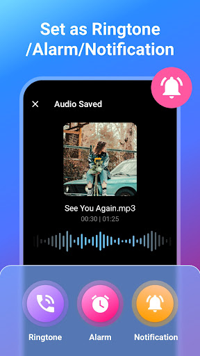 With MP3 Cutter & Ringtone Maker, you can <b>accurately cut</b> out the tuneful part of music and set it as a <b>unique ringtone for every contact.</b> Customizing <b>your own alarm/notification</b> is also viable. It even supports bitrate & volume adjustment to create <b>the highest quality melody</b> for you!<br><br>🎵Fast audio input & cutting:<br>● Support <b>mp3, wav, ogg, m4a, acc, flac etc.</b> <br>● Audio cutter, <b>millisecond-level perfect cutting.</b> <br>● <b>Zoom waveform</b> to trim audio accurately.<br>● One tap to set Start & End time.<br>● Inbuilt music player for playing music clips any time.<br><br>🎶Powerful audio editing & output:<br>● Edit audio name & <b>convert format,</b> e.g. mp3, aac, etc.<br>● <b>Adjust bitrate for hd audio,</b> 64kb/s, 128kb/s, 192kb/s, 256kb/s, etc.<br>● <b>Reduce/boost volume.</b> <br>● Set as Ringtone, Alarm, Notification.<br>● <b>Customize unique ringtone for every contact.</b> <br><br><br>How to use this audio cutter:<br>1. Choose a music clip from your phone/ SD card<br>2. Select the length of the music you want to cut out<br>3. Edit tag for the clip (Title, Format, Bitrate, Volume etc)<br>4. Save as Ringtone/Alarm/Notification or Share<br><br>♪ Exclusive ringtone editor<br>Go to set a unique ringtone directly for family members and friends. Download this mp3 editor/ringtone editor to release your creativity!<br><br>♪ Easy audio cutter<br>This audio cutter identifies ALL audio files on your device and SD Card automatically. And you can also use the inbuilt browser to search songs.<br><br>♪ Professional audio editor<br>MP3 Cutter & Ringtone Maker enables you to select audio length quickly with waveform zooming or one tap to set start time or end time manually. And you can re-edit music clips inside the audio editor.<br><br>♪ Efficient audio trimmer <br>No need to wait for finishing the current converting task. You can start next audio cutting directly with this mp3 editor. In addition, you can re-edit music clips in output folder.<br><br>♪ All in one tone creator<br>Not only a mp3 cutter, but also a mp3 editor, audio editor, audio trimmer, ringtone maker, ringtone editor and notification tone creator.<br><br>Explanation for permissions:<br>android.permission.WRITE_EXTERNAL_STORAGE<br>android.permission.WRITE_CONTACTS<br>android.permission.WRITE_SETTINGS<br><br>MP3 Cutter & Ringtone Maker need the permission to access to your contact data, then you can choose exclusive ringtones just created for each contact.<br><br>Please be assured that the request is for the setting ringtones ONLY. MP3 Cutter & Ringtone Maker will never collect your contact information.<br><br>Thank you for downloading MP3 Cutter & Ringtone Maker. And your suggestions or problems are always welcomed. Please contact us at videostudio.feedback@gmail.com.