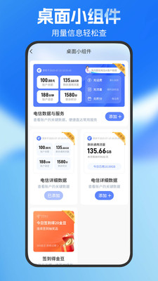 描述: 【多重福利】福利升级,海量好礼等您来! · 暖心福利包:抽限量话费、海量福利月月领不停。 · 签到打卡:连续签到、金豆秒杀抢兑至高10元话费。 · 新人礼包:新用户注册领专属10元话费券。 · 生日礼包:生日当月领取专属好礼。 · 充值福利:手机、宽带、固话充值享专属折扣;0.01~1500元金额随心充,小额充值随心用。 【服务优化】 随时随地提供贴心服务! · 桌面组件:用量一目了然,桌面小组件轻松查 · 用量查询:流量分类查询,已用剩余尽在掌握 · 设置界面:设置分组清晰,操作便捷全新升级 【精选内容】 您可在电信星播客观看热播影视综集锦、热门金曲视频彩铃等精彩短视频;还有专享超值直播间,万家厅店网罗全网底价商品优惠,更有5G手机折扣、话费、流量、终端权益多种好礼送不停! 中国电信APP官方服务QQ群: 240861967,本群仅针对如中国电信APP出现无法正常登录、闪退、数据查询失败等相关内容进行答疑解决,如您有关于中国电信业务等方面其他问题,也可以直接致电当地10000号进行咨询。