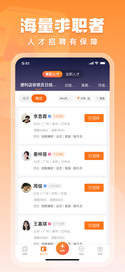 兼职猫,企业招聘专家。校园兼职、实习、猎头直聘、寒暑假工、线上兼职等众多类型,招聘领域应有尽有。招兼职上兼职猫,一招就够! 产品特色: 【托管招聘】2500万简历人才库保证招聘效率,更有专业团队为你托管招聘工作,高效又省力。 【管理方便】查看兼职简历,群聊实时沟通,现场一键录用,人员批量签到,线上结算更快捷。 【人才保障】双向互评机制,打通兼职评价,求职者的特殊标签让你更快评估素质能力。 【城市管理】全新推出集团号,各地招聘账号可统一管理,全国招聘省时省力! 【企业集团】企业集团规模化,统一管理各城市账户,实时监控全国招人数据。 联系我们: 客服Q Q:800005602 微博:@兼职猫