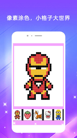 像素小画家是一款可帮助你缓解生活工作压力,是对抗压力带来的焦虑的解压秘密神器。 像素小画家专门聘请了专业的像素画家为你提供的精美的像素图稿,所有的图稿都是由插画设计师精心挑选和制作,适合所有年龄层的人,包括成人和小孩。 数量众多的像素图稿,以满足你各种需求!通俗易懂的简易操作填色操作,让你享受像素小画家给你带来的轻松游戏体验。 易于填色,挥挥手指,你也是一代画坛巨匠。 【像素小画家特色】 1、超多可爱像素图画 像素图画包括:二次元人物、动漫角色、漫画主角、游戏人物、明星爱豆...你喜欢的人物这里都有。 2、每日更新像素图 像素小画家每日为你准备全新的精美像素图画等你数字涂色,涂色完成后与好友一起分享像素佳作。 3、超放松填色体验 放轻松,通过像素涂色来释放您内心的艺术才华!这是一款集美貌与灵感于一体的像素涂色书,不要错过这个缓解压力提升绘画技巧的机会喔~ 4、填色道具超好用 使用各种填色工具助你轻松上色,使用“放大镜”快速定位找不到的数字格子,用“颜色桶”为任意数字的相邻格子着色;