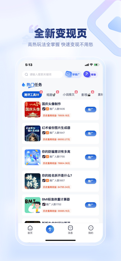 创作猫是一个帮助短视频创作者解决创作、变现难题的服务平台。 不同于其他单一模式产品,创作猫以短视频创作者的真实需求出发,通过内容+工具的模式让短视频创作更简单,提升变现效率! 「热门模板」 -针对不同变现场景拥有海量视频模板,用户只需替换素材,即可一键生成同款视频,发布推广赚收益。 -爆款模板每日推荐,无需自己筛选,爆单热门+猜你喜欢的精选模板供你选择,内容丰富又便捷。 「智能美颜提词器」 -智能跟随,任意调节台词滚动速度,台词跟着语速走,想怎么拍怎么拍。 -美颜滤镜,拥有时下最热门、自然的滤镜和美颜效果,轻松打造精致上镜脸。 -免费使用,只需下载创作猫APP即可使用,使用次数无上限。 「海量素材剪辑器」 -色度抠图,简单好用的抠图功能,只需一键取色,色度键控调节完成抠像。 -热门素材库,涵盖多种热门变现场景素材,只需一键搜索,即可添加使用。 「高质量实用课程」 -实战讲师授课,短视频实战经验丰富的大咖讲师保姆级教学,让你学完就能上手操作。 -内容优质丰富,涵盖短视频运营、剪辑、变现、摄影等内容,快速获取干货知识。 「即时通讯工具」 -添加好友,精彩内容立刻分享,共同学习创作,关注好友新动态,提升互动体验。 -在线客服,优化咨询服务流程,问题反馈更流畅,解答疑问更及时。 「最热门变现灵感」 -变现灵感,拥有小程序推广、小游戏、电商带货等热门变现玩法教学,搭配草稿箱,只需替换素材即可生成变现视频一键发布,变现找灵感再也不用愁。 -跟拍灵感,拥有真人出镜口播类跟拍灵感,只需使用跟拍一键唤起提词器模仿拍摄,快速制作原创视频。 「全网最全的工具」 -强大的创作工具包含:文案成片、超级混剪、照片高清修复、漫画脸、老照片修复 、铅笔画制作、照片动起来、智能抠图、超清人脸修复、照片画质增强、最美证件照、九宫格、智能配音、违禁词检测、链接转文字、视频转文字、数据监控、账号检测等,一个平台满足所有创作需求,充分提升短视频创作效率。 「海量变现任务」 -精选电商任务台:拥有海量高佣金商品,支持一键添加到抖音商品橱窗,同时提供带货视频素材,实现一站式带货变现。 -小说推文任务台:针对小说推文变现场景,提供海量不重复的小说推文素材,只需添加文案,通过智能混剪,合成配音、字幕和推文素材,快速便捷完成一个小说推文视频。 -影视漫画任务台:针对影视漫画变现场景,聚合多平台短剧内容,提供独家原创高质量短剧,类型丰富应有尽有,为影视类账号提供有效变现渠道。 -小程序任务台:支持推广0粉任务及多种推广方式,操作简单易上手,只需发布视频推广小程序任务,新手也能轻松变现。