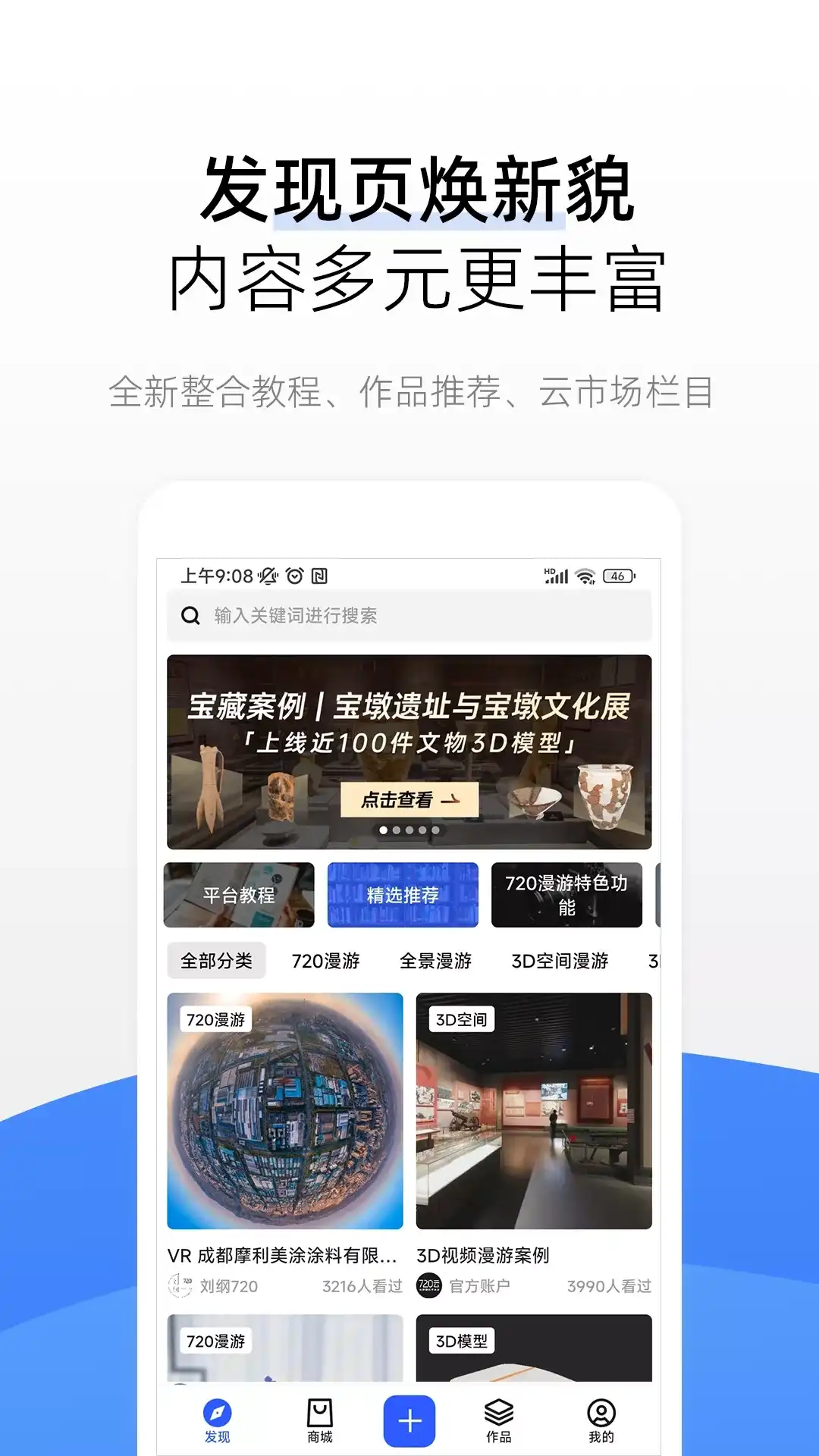 【上720云,欣赏国内优质精品全景】 全景室内设计、新房装修、旧房改造,景观园艺,更有国内外各网红景点最美全景展示。繁华的城市、静谧的村落,热闹的民俗节日、人物纪实,看不到的景观时刻,中学高校、展馆展览、全景原画、汽车内饰等,全景创作者们全都用全景的方式记录下来,给你重新打开这个世界的大门。 【用720云,做炫酷的强交互全景漫游H5,学先进的全景课程理论/实操】 在线上传、制作,傻瓜化操作,快速分享至微信/QQ/抖音/快手/皮皮虾等社交短视频平台,快捷骚操作,不需要技术含量! 在线课程、专业授课,海量免费视频教程,定期线上培训,快速自学全景图、全景视频的制作方法、后期技巧、商业干货进阶教程。 【找720云,顶尖技术团队提供全景拍摄、H5制作服务】 业内公认的全景摄影师认证体系,为覆盖全国范围的全景摄影服务提供高标准的制作水准、高效率的执行流程、严格的验收标准。 覆盖全国50个城市的合伙人制度,更适合全景行业良性发展的合伙人,保证行业良性竞争和售后服务,给客户体贴入心的全程服务体验。