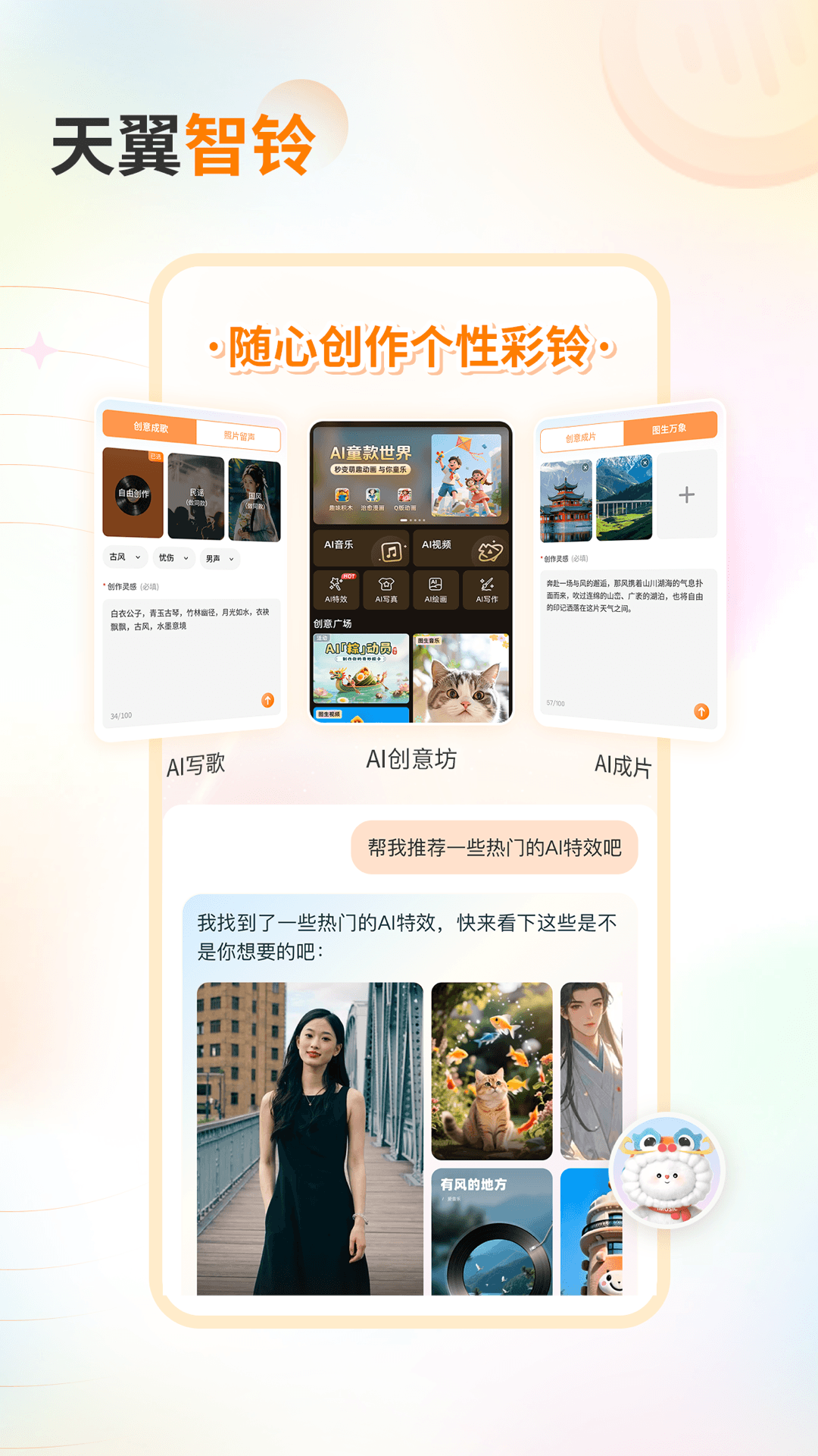 爱音乐APP是中国电信旗下产品,集视频彩铃、音乐听歌、有声听书等多功能为一体的应用。这里有海量视频彩铃模版任你设置,还可以一键DIY创作,让通话等待更有趣。 【视频彩铃,任意切换】中国电信用户可定制专属视频彩铃,让你的来电更加与众不同。明星呼叫秀、秀丽风景、热门视频片段等随心设置,让通话等待“看”见精彩。 【彩铃DIY,彰显个性】一键DIY,创作专属你的视频彩铃。更有海量制作模版、热门好听的BGM等你来选择!让你与众不同,你的彩铃你做主。 【音频彩铃,塑造独特】个性化音频彩铃,打造与众不同的手机响铃体验。这里提供海量音乐资源,让你自由选择喜欢的歌曲作为音频彩铃,让每个来电都充满乐趣与惊喜。 【场景音乐,随时畅听】工作学习、疗愈放松、运动健身等全场景音乐歌单,轻松营造音乐氛围。百万曲库、高品质无损音乐、各种听书频道随意畅听。 有任何问题,可通过产品反馈QQ群(398326060)加入我们,帮助我们一起改善、解决问题! 官网网站:http://www.imusic.cn APP开发及运营者:天翼爱音乐文化科技有限公司 客服联系方式:4008308100(在线时间08:30-22:00)