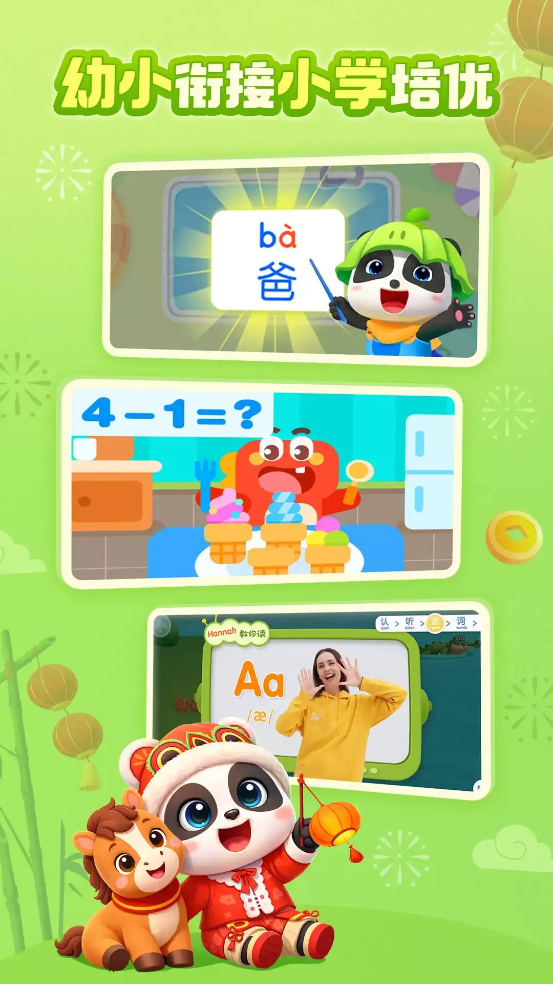 【宝宝巴士】,一站式满足启蒙需求,汇聚10000+集儿歌动画、500+个益智互动、16000+个好故事,构筑儿童快乐启蒙乐园。 【宝宝巴士直通车】 第一站: 到达动画乐园,随心点播 亲子动画:全新IP依娜和恰恰上线!他们将引领宝宝学习新知识,开启一段充满欢笑的启蒙旅程。 百科科普:用动画视频生动演绎天气变化、动植物生长、季节轮转等不同主题自然百科知识。 第二站: 探访儿歌王国,听见世界 生活习惯:包含哄睡叫早、饮食习惯、卫生好习惯、安全指南等儿歌,呵护幼儿成长。 国学熏陶:将唐诗宋词、三字经等经典国学编成儿歌,唱读结合,传递优秀传统文化。 第三站: 前往故事小岛,放飞想象 尽情推理:原创热门侦探故事,邀请宝宝和猴子警长、啦咘啦哆警长一起破案,欢乐推理。 快乐阅读:宝宝巴士精选童话绘本、宝宝巴士绘本故事等丰富儿童绘本,宝宝能够自主阅读。 第四站: 畅游互动小镇,自由探索 探索百科:小宝宝从哪来?春节为什么要贴春联?宝宝快来体验科普互动,亲自揭秘。 职业认知:消防员、医生、警察、汽修师、宇航员、甜品师等百变职业,宝宝都能扮演。 赶快乘坐【宝宝巴士】,体验海量好听好看好玩的内容吧!