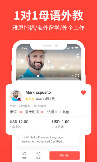 italki - 为每一个热爱语言学习的人创建的全球性语言学习平台,无论你是准备留学移民、家庭教育、商务面试、口语练习、还是想要了解国外文化,都能找到适合的老师课程和学习伙伴,与你共同成长 我们提供: ▸在线1对1真人母语外教,专属定制学习内容,雅思托福PTE,JLPT/DELF/TCF等专项备考,零基础也能轻松入门,以学生为中心的学习方式,高效是实时互动,给你带来不同以往的愉悦学习体验。 ▸超过150种语言的课程,想学英语、日语、韩语、法语、德语、西语,或是任何小语种,都能找到适合你的优质母语老师。 ▸ 一课一付,按需上课 上一节课付一节课,每课时低至5美元,告别长期捆绑消费,真正拥有选择学习方式的自由。你可以跟着一个老师学习,也可以同时拥有数个不同专长的老师,根据自己的需求和节奏,提升外语水平。 ▸ 随时随地,自由安排 根据个人日程,自由安排上课时间。只需网络即可开启与真人老师的实时互动视频课程。找到你的舒适区,充分利用碎片时间,外语水平就可以突飞猛进。 ▸ 各种实用有趣的互动学习工具,播客、单词记忆、小测验、语言评估/测试、社区的热点话题讨论等海量免费学习资源,为你提
