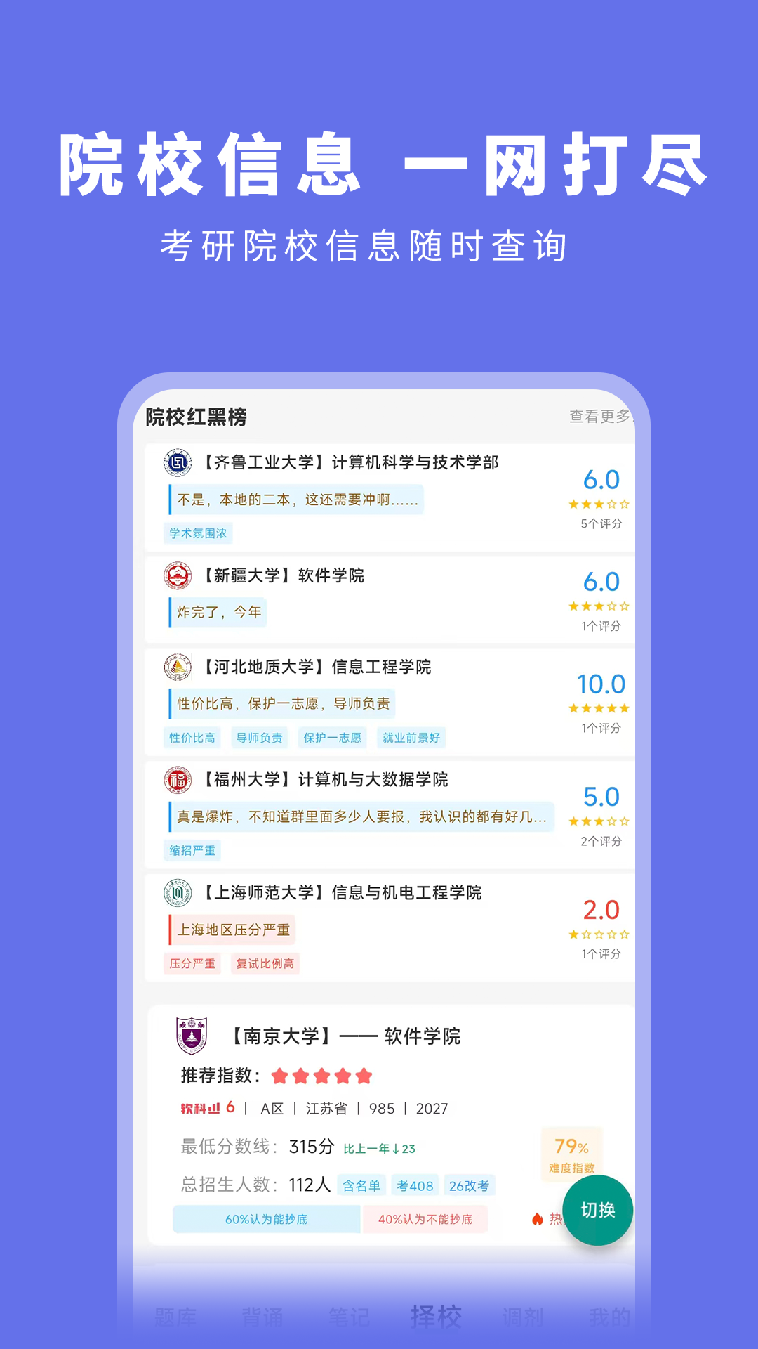 考研全科目全知识点进行讲解及对应刷题练习,提供考研院校选择、外刊、答疑等工具的集合型自主学习 app<br>一款根据考研全科目全知识点进行讲解及对应刷题练习,提供考研院校选择、外刊、答疑等工具的集合型自主学习 app。<br>【针对人群】一款针对大学生考研的自主复习APP<br>【视频讲解】视频及直播讲解考研全科目知识点<br>【知识图谱】围绕知识点,视频讲解及真题练习<br>【考研工具】真题库、考前模拟题库、知识点练习题库、题库有练习、检测和背题模式。外刊知识学习、考研院校选择大数据系统,在线答疑系统,解答学习中的各科问题。<br>【数据展示】个人学习进度及全科目所有知识点展示,掌握未掌握和完全不会等标注知识点情况,更清楚自身问题,针对问题重复学习及刷题。<br>【优势汇总】直播考前查缺补漏,围绕知识点视频学习及刷题练习,个人数据展示薄弱环节,各工具助力复习,最终一战成硕
