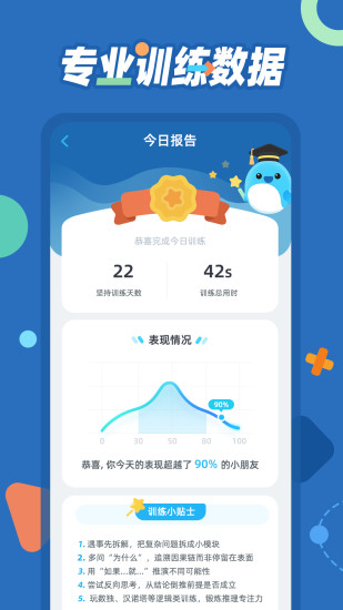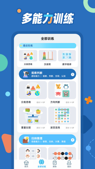 逻辑思维训练是一款训练逻辑思维推理能力的益智类软件。目的是让用户观察、发现、探究图形和数字的排列规律,通过比较、推理,从而掌握逻辑推理的方法,培养用户的观察、推理能力和逻辑思维。 【应用特色】 -训练计划:设置了每日训练报告,每天10分钟,提升逻辑思维能力。 -每日挑战:每天挑战5题,并设立了排行榜,看谁挑战用时最短! 设计了五大维度思维训练 【观察判断】 1、分类思维 2、方向判断 3、重量比较 4、迷宫连线 【归纳整理】 1、图形变换 2、图形规律 3、汉诺塔 4、数字规律 【逻辑推理】 1、数独 2、纵横算式 3、数织 4、推理问答题 【记忆训练】 1、记忆大师 2、数量记忆 【专注训练】 1、经典舒尔特 2、乱序舒尔特 丰富趣味的的玩法设计,十分挑战孩子的观察推理能力,快让你的大脑动起来吧!