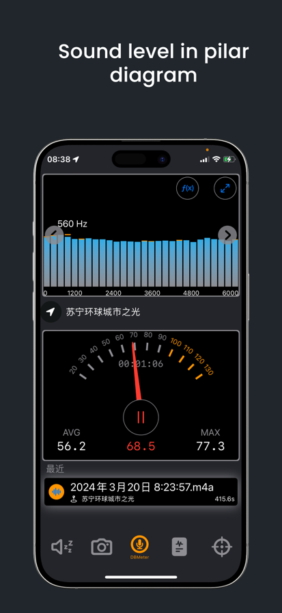 智能分贝仪是功能全面的分贝&噪声检测计,具有独特的测量精度和集成式频谱分析仪,使用专业分贝仪校准,可以快速和准确地生成声音监测报告。 「主要功能」 1. 实时分贝检测: 实时监控当前环境噪音大小,表盘显示实时分贝仪检测数据; 2. 拍照取证留存: 支持拍照留存分贝检测数据,方便以后更多用途; 3. 录音取证留存: 支持录音留存噪音检测数据,方便以后更多用途; 4. 录像取证留存: 支持录像留存噪声检测数据,方便以后更多用途; 「主要痛点」 我们所处的世界充满了噪声(又称分贝、噪音等):汽车、电动工具、人群、机器及其他常见来源所产生的噪音; 噪声是影响较大的环境污染之一,较高分贝的噪音甚至会对人的耳膜造成严重的损伤,致使失聪等。 本软件测量结果精确灵敏,精度高,适用范围广,能广泛用于各种环境的噪音分贝进行测量。 「精准度告知」 尽管我们提供了高精度算法,由于手机等移动设备的硬件规格限制,并不能完全代替专业设备,数据仅供参考。 「连续订阅会员说明」 --订阅价格可能会存在变动,以实际展示订阅价格为准 ●连续订阅1周会员说明 --订阅周期:1个周 ●连续订阅1月会员说明 --订阅周期:1个月 ●连续订阅1年会员说明 --订阅周期:1年 「其他订阅会员说明」 --订阅价格可能会存在变动,以实际展示订阅价格为准 ●订阅永久会员说明 --订阅周期:永久 ●其他规则 --付款:通过用户的iTunes账号扣款,用户确定订购后及付款; --续订:苹果iTunes账号会在到期前24小时内扣款,扣费成功后订阅周期顺延1个订阅周期; --取消订阅:如需取消续订,请在当前扣费期前至少24小时操作,操作方法:从Home页进入[设置]->点击[iTunes Store与App Store]->点击[Apple ID],选择[查看Apple ID]->[账号设置]->点击[订阅],点击下方取消订阅即可; --用户协议: http://docs.starxalliance.com/godecibel/user_agreement_cn.html --连续订阅协议: http://docs.starxalliance.com/godecibel/continuous_subscription_agreement_cn.html --隐私条款: http://docs.starxalliance.com/godecibel/privacy_policy_cn.html 「联系我们」 在使用过程中,如果您有任何问题或意见,请联系我们,客服会第一时间给您反馈,您的反馈是我们前进的动力!