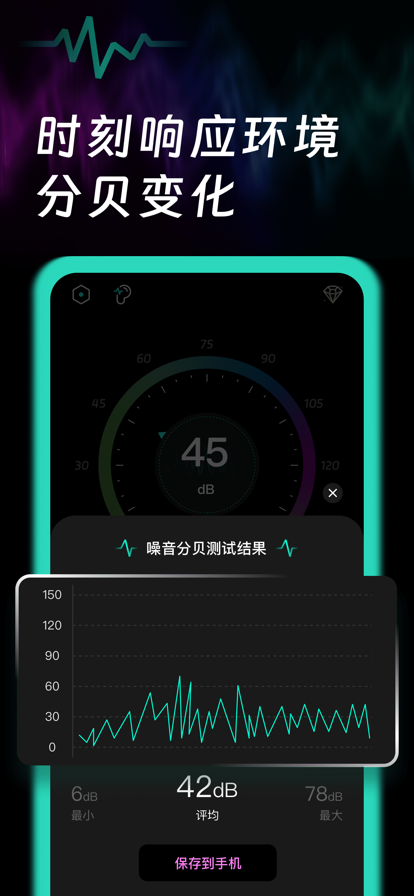 噪音检测仪是一款专业的环境噪音测量应用,能够精确测量并记录环境中的声音分贝值。 ·提供精确的环境噪音校准 ·实时显示当前分贝值,范围0-200dB ·环境噪音等级识别(极静、安静、正常、嘈杂、喧闹)·动态仪表盘界面,直观显示测量结果噪音检测仪是一款专业的环境噪音测量应用,能够精确测量并记录环境中的声音分贝值 注:尽管我们提供了高精度算法,由于手机等移动设备的硬件规格限制,并不能完全代替专业设备,数据仅供参考。