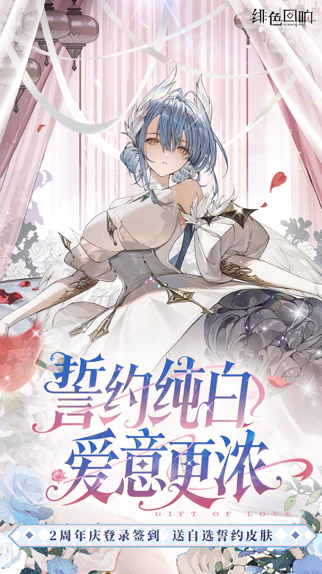 《绯色回响》2周年庆 - 纯白婚纱纯白送,二周年庆爱更浓 - 2025绯色2周年庆甜蜜进行中 纯白婚纱纯白送,二周年庆爱更浓!《绯色回响》2025年2周年庆活动开启,周年狂欢甜蜜进行时!活动期间进行七日签到即可领取SSR誓约皮肤自选箱,快把你心仪的共鸣者迎娶回家!参与周年活动,更有SSR共鸣者拉格娜皮肤、自选抽数等诸多好礼相送。 七日领取婚纱自选,纵享周年纯白爱意 2周年庆活动期间,登录完成七日签到即可领取SSR誓约皮肤自选箱+对应SSR角色自选箱,解锁心动特触体验与专属ASMR。将优雅与洁白化为最真挚的爱与仪式感,纯白的婚纱就要纯纯白送!此外,参与周年庆限时活动,更可获得拉格娜时装【大姐大驾到】以及至多98抽等诸多好礼! 首位MR角色优雅登场,元素伤害引爆全图 如天鹅在璀璨舞台上翩然起舞,似雏鸟在温暖婚床上束手乞怜……风属性限定MR共鸣者【卡菈】优雅登场!MR共鸣者专属元素属性系统加入对局,专属【临界技】与【临界值】系统同步登录。更有MR共鸣者强化专属入场拉幕动画与技能特效,无死角展示她的每处细节。 全新魔女莉莉丝上线,感受她的每一面 什么!绯色人气角色莉莉丝也难逃【魔女化】的魔掌!?唤醒者大人,【魔女之间】急需您的光顾!第三位魔女正式上线!活动期间,参与限时玩法【魅影千寻】即可解锁UR魔女莉莉丝,开启全新立绘形象与个性化AI聊天。在未知力量彻底侵蚀她之前,将其拯救……抑或着,被拖入深渊? 全新主线+全新玩法,拯救世界的旅途还在继续 “特赖利克爆炸案的硝烟散尽,队员们带着伤痕与复仇的信念,在唤醒者的带领下重建家园,却再次意外揭开了新的阴谋。这全部的一切,都指向了充斥着天灾与内战的圣国……”2周年庆版本主线剧情大更新!全新PVE玩法【噬欢魔城】同步上线,拯救世界的旅途还远未结束!