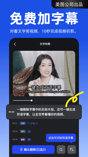 开拍App - 用AI制作网感口播视频 开拍是美图公司在2023年推出的一款用AI制作网感口播视频的生产力工具。通过AI帮你写,AI帮你拍,AI帮你剪,帮助创作者0基础1分钟制作有网感的口播视频,让自媒体起号更简单! 核心亮点: ===一键网感剪辑!自媒体人的随身剪辑师=== 【文字快剪】免费加字幕,支持10+种方言识别、一键去水词、一键生成双语字幕,对着文字剪视频,视频初剪更快更简单。 【网感模板】AI智能匹配贴纸花字、音乐音效等素材,提供60+多风格多行业剪辑模板,一键剪出网感满满的口播视频。 【动态字幕】字幕动起来,视频更带感!上百款字幕模板任你挑选,一键剪出专业剪辑师都在做的字幕效果。 【AI片头】一键包装视频精华内容、一键生成创意开场动画,两种开头都吸睛,3秒抓住开场流量。 【AI封面】智能识别关键帧,结合平台调性,一键生成爆款封面,让你的视频点击率飙升! ===美业、大健康、保险财经、实体商家等 行业口播视频提效神器,简单高效做短视频营销!=== *行业专属网感模板,每天1分钟,甩开90%同行! 【网感模板】一键剪出行业头部IP同款视频,每天1分钟,轻松实现日更,稳稳拓宽客源。 *行业专属脚本,AI帮你快速出稿,文案吸客不费脑! 【AI脚本】接入DeepSeek R1推理模型,提供行业专属脚本, 输入关键词,即可一键生成爆款文案。还有保险、美业、健康养生、教培等行业灵感库,让你不再头疼选题。 【文案提取】告别手打字,一键提取视频/图片/链接中的文案并创建脚本。 *行业口播必备,多款神器,帮你解决出镜难题! 【提词器】[AI语速]模式,助你拿捏提词节奏,告别生硬读稿,口播流畅又自然。 【高清相机】支持4K视频录制,画质超清,看着专业!支持滤镜、美颜调节,上镜好看! 【数字人】太忙没时间录口播?定制个数字人,让数字人替你24h出镜营业,轻松实现日更自由。 【AI对口型】读错稿不想重新拍?AI一键改口型,让旧视频说新台词。 其他功能: ===开拍AI黑科技全家桶=== 【AI消除】你的视频电子橡皮擦,支持消文字、消标记,连满屏乱飞的游走文字也能一键消除,还你干净“原”视频。 【画质修复】AI超清修复,渣糊画质秒变清晰,图片视频都能修。 【一键成片】接入DeepSeek超能力,不用拍不用剪,会打字就能一键生成视频! 【裁剪·扩展】AI扩视频,智能补画面,轻松实现构图自由。 【声音克隆】免费克