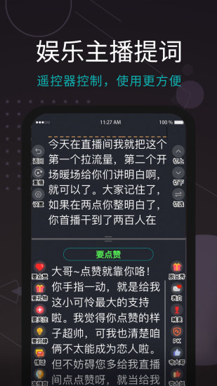 说说提词器是一款专业悬浮提词、记词的工具,专门为douyin短视频创作者、直播达人、up主们提供的创作神器。 悬浮窗提词可以搭配各大短视频、直播App使用、编写好文稿内容,实现自动滚动播放、轻松解决录制视频时忘词的烦恼,高效准确表达,极大提高录制效率。适用于短视频、网课直播、vlog记录、会议演讲等多个场景的使用。 「AI语音提词的提词器」 台词跟着语速走,台词智能滚动,根据语速控制滚动,随意穿插文稿外内容,已读未读进行区分,台词一目了然。 「万能悬浮窗的提词器」 开启悬浮,可搭配任何应用同步协作使用。相机、直播App,同样支持边拍/播,边看台词,悬浮窗可随意,拖动到屏幕任意位置,靠近摄像头,让拍摄视频更上镜,更自然,不再会有因看台词眼神偏离的尴尬现象。 「角色台词自动区分」 支持台词分角色进行对话区分,可添加多个角色,用标签及颜色进行区分,角色对话更轻松。支持快捷录入角色台词,文稿中编辑好角色编号,一键导入,高效自动识别,台词录入更省心。 「专业语音录入台词」 采用智能语音识别技术,准确将语音转换为台词,便捷文字编辑,大大提高台词记录效率。 「文本导入/转化」 支持word / txt文件文档直接导入,几秒钟即可自动提取文本中的台词,不再担心台词字数太长而手动输入,解放双手,省时又省力。 「一键视频提取台词」 支持MP4、AVI、3GP、RMVB、WMVB等多种格式视频一键提取台词,等待几分钟即可输出一套精致的文案。 「台词文件夹管理」 增强台词文件管理功能,台词文本可移动到任意文件夹内,台本分类管理更得心应手! 「提词悬浮/面板自由设置」 悬浮窗、题词板支持自定义调节面板宽窄大小,台词字体的大小、颜色、滚动速度、背景透明度。更有参考线、延迟播放、已读区域标记等辅助工具。