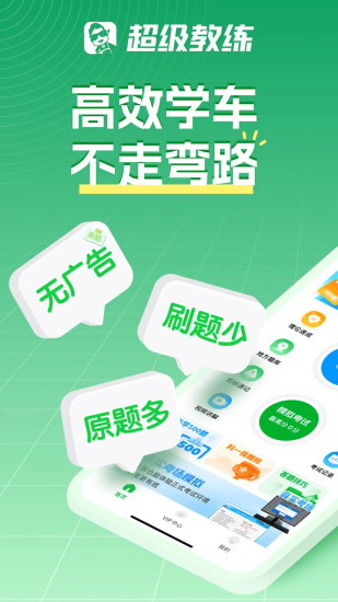备战驾考,就用超级教练;这是一款为学员提供驾考学习的APP,刷题页面无广告、体验好、拿证快;实时更新 2025驾照考试科目一、科目四全题库,涵盖小车、摩托车、货车、客车车型;学员端可在线学习科一科四理论题库和科二科三学车视频、模拟练车,助学员轻松考驾照,快速拿证! 学员:高效学车 不刷无效题!2025驾考新规题库实时更新,剔除无效重复题,科一科四直击关键考点!刷题更少,效率更高!每题都有答题技巧+速记口诀+官方详解,告别死记硬背,学理论过程更轻松!全真模拟考试,高度还原科一科四真实考场环境,提前熟悉理论考试,驾考更有把握!【实操宝典 科二科三轻松练】全程视频讲解科目二(倒车入库、侧方停车、坡道定点)等考点,科目三(路考细节、灯光模拟)操作技巧。本地考场实拍视频+语音讲解,攻克考试难点,一看即懂,练车事半功倍!【教练协同 学车进度实时同步】APP支持与教练一键绑定,学车进度与模拟成绩将实时同步,方便教练个性化指导与精准安排练车,提升考驾照通过率。 教练:智能管理 招生无忧!每日更新优质招生素材,300000+学车线索持续更新助力招生更高效。提供科二科三灯光模拟、线路模拟、语音播报功能。