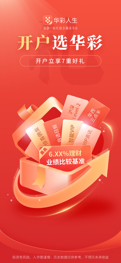 股票交易、股市行情、投资咨询、基金理财、国债投资、市场资讯等金融交易就选华彩人生,一站式投资理财平台。 【股票行情】资讯光速覆盖,及时了解投顾专家早午晚评、策略周报等一手投资资讯; 【快捷开户】3分钟快速开户,足不出户快速在股市开户,沪深A股、基金账户一步到位; 【投顾服务】800名资深专家,提供仓位建议、个股精选等股市干货,实时推送; 【短线机会】一招抓热股,筛选主力板块、资金流向,捕捉短线热点机会; 【股友竞技】股林高手对决,谁是股林霸主?还有多类赛事大奖享不停; 【智能服务】辅助模型、高效择时选股等多种专业智能工具; 【基础功能】 ·极速行情:沪深港美、全球行情尽在掌握,十档行情了解个股盘口,助力投资交易; ·极速交易:股票、基金、债券等极速交易通道,委托方式灵活; ·智能工具:自选、持仓实时追踪,涨跌幅预警、大事提醒帮您盯盘; ·市场资讯:覆盖全球市场的股票、基金即时资讯,更有每日直播解读精华干货,助您随心掌握投资动态; ·观点解析:深度观点24小时滚动,时刻把握市场脉搏; 【品牌服务】 华西证券是中国A股上市证券公司,上百家营业部遍布23个省与直辖市,涵盖股票开户、股票行情、股票交易、股票入门、投资咨询、炒股入门、炒股开户、炒股软件、炒股神器、炒股大赛、股民学院等; 公司汇集800余名经验丰富的资深证券投资顾问[持牌投顾],面对开户客户,提供投顾服务,更专业更靠谱。 新客权益活动规则:新客户开户成功后,即可享有新客7重权益(含理财券);新客权益于T+1日(工作日)下发到账户, 新客权益活动时间:2023年1月1日--以后(长期有效);注:理财券有效时间为一个月,过期作废,注意时效; 【联系我们】 如果您在证券开户、股票交易、投资咨询或产品使用上有任何疑问和建议,欢迎您联系我们。 1、7*24小时在线客服咨询:打开华彩人生APP,点击“我的”右上角的客服头像进行咨询。 2、网站:http://www.hx168.com.cn/ 3、客服电话:95584,4008-888-818 4、华西证券官方微信公众号:华西证券微服务(hxzqwfw) 投资有风险,入市需谨慎;历史数据仅供参考,不预示未来收益,活动以实际为准