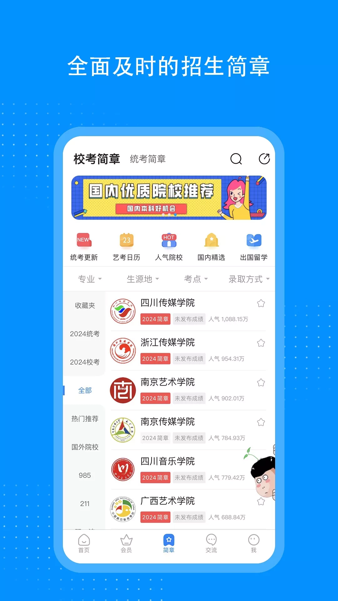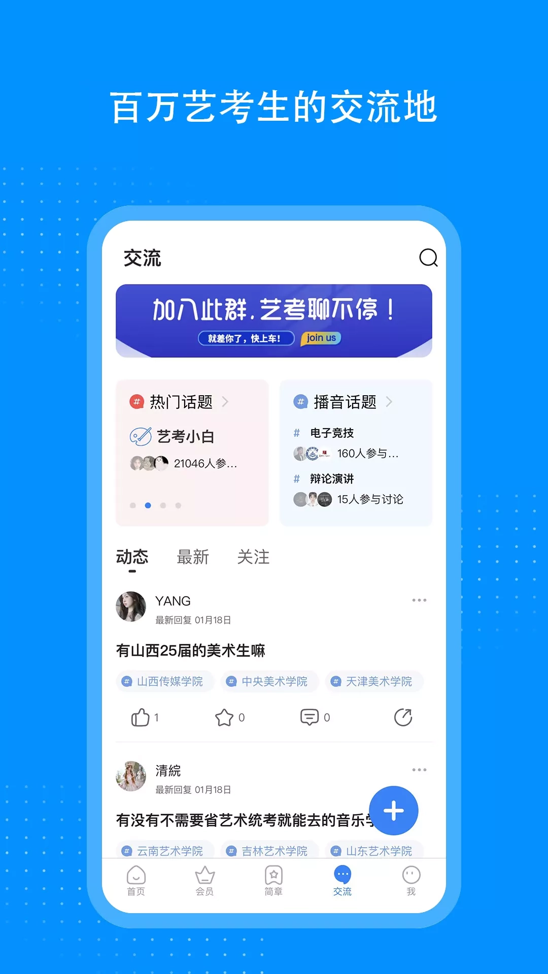 艺考生App,百万艺考生必备神器。由中传、中戏、北电、浙传、央美等名校艺考师哥师姐倾情打造,为你的艺考而努力! 【查艺考简章,获取一手资讯】 -范围广:覆盖全国31个省市及1000多所艺术类大学,帮你获取一手的统考及校考简章。 -信息全:及时更新报名考试、成绩查询、历届分数线、志愿填报等最有效的简章信息。 -方便用:超好用的艺考简章查询工具,帮你快速查询想要的报考信息;超实用的艺考行程工具,帮你规划最合理的报考安排。 【找艺考培训,求学一线名师】 -专业强:汇聚全国各地优质艺考培训机构,师资来自顶尖艺术院校,他们会根据你的个人特色定制专业课程,帮你提升专业水平,助你实现艺考梦! -方式多:支持机构试听课、名师测评、师哥师姐答疑等多种方式,让你用自己喜欢的方式去了解艺考,帮你找到最适合自己的艺考培训。 -参考全:围绕艺考培训提供全方位参考点,从课程安排及费用、教学及住宿环境,到师资安排、历届艺考成绩,帮你做出最佳的艺考培训选择。 【定艺考目标,开启一流备考】 -内容多:制定你的艺考目标,获取定制的艺考题库和课程资料,帮你赢在起跑线。艺考题库覆盖了历年统考及校考真题、模拟题及各专业题库,如文常、乐理题库等;艺考课程覆盖了基础入门课、专业系统课、统考及校考备考课等;艺考资料覆盖了各大专业所需的备考资料,如优秀影评库、自备稿件、摄影技巧、小三门等等。 -更系统:全流程覆盖,统考、校考、高考一个不落帮你备考;各阶段重点突击,从入门到考前突击,帮你抓住每个阶段的重点;各专业系统知识搭建,帮你获取备考专业的知识框架。 -常更新:备考相关功能、题库、课程、资料等长期优化更新。 【来艺考交流,结识一群好友】 -答疑解惑:专属艺考生的交流地,备考、求学、报考中遇到任何问题,你都可以在这里提出,大家会努力帮你解决。 -话题讨论:分享艺考心情,参与话题讨论,避开那些艺考路上的坑,陪你面对正在经历的一点一滴。 -结识好友:与众多艺考生交流学习,帮你找到同在艺考道路上的朋友。 为梦想,不将就。 --------------- 如有任何疑问或建议请联系我们: 微信公众号:艺考生App(微信号:yikao_app) 官方网站:https://www.yikaosheng.com/