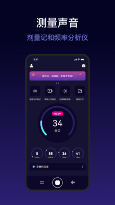分贝仪也被称为分贝仪(分贝计),测声计,噪声计,噪音检测器。本应用能隔音效果测量、噪音分贝测量,只要打开分贝仪,就能测试出噪音的分贝大小。 其他特色【测量工具】 实景测量:输入身高作为参考高度,就能测出孩子的身高、远方建筑物的高度,真实地测量物体地高度。 角度测量:手机也能当量角器使用,将手机平行地对准物体底部,拉动量角器的参考线,即可清晰地得到物体角度度数,方便简单。 长度测量:将手机当成尺子使用,可以测量出每一毫米的长度。