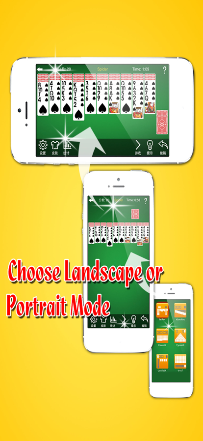 蜘蛛纸牌全新上线,纸牌和益智相结合的经典纸牌! 具有规则简单,操作灵活等特点,试玩一下,多种纸牌玩法,一定能让你挑灯夜战,欲罢不能! 你需要利用自己的智慧解开牌局,我们的目标是以最少的移动次数将牌面中的十叠牌以及待发的五组,共计八叠牌整理移除。当所有牌被移除整理到界面的左下方则获胜。充满挑战,又可以获得无穷的乐趣,是你和朋友渡过闲暇时光的不二选择。 特色之处: · 三种难度选择,单色、双色和四色任你选择; · 自由横竖屏切换,想怎么玩就怎么玩; · 统计局数,让您对您的战绩了如指掌; · 纸牌玩法,蜘蛛纸牌玩腻了,还能换成其它纸牌玩法来放松一下。 充满挑战,又可以获得无穷的乐趣,是你和朋友渡过闲暇时光的不二选择,赶紧来尝试一下吧!!!