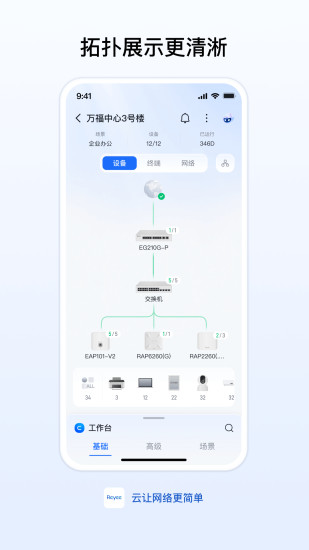 爱快官方应用,5.0版本全新上线,焕然一新! 这款APP可以提供各种无线网络交付,测试,优化和移动运维。爱快用户还可通过本软件进行网络管理与维护,随时随地轻松实现网络管理与维护。是网络工程运维或家庭无线网络的综合应用。 主要功能: 1、网络管理:随时随地管理联网设备,您可以简单设置家长守护;Mesh快连;智能流控;黑白名单;终端限速;业务管控;访客WI-FI;等路由设置。 2、应用工具:网络体检帮助您发现网络问题。并包括测速;漫游测试;Ping;Tracert;信道检测等丰富的网络工具。 3、发现:您的网络“装备库”,输入用网场景,方案秒出,帮您轻松搞定组网方案。 4、社区:您的网络“小圈子”,软硬件功能畅所欲言。网络难题有问必答。