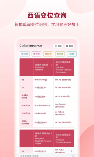 《西语助手》是一套针对中国西语学习者特别设计的教育软件。软件以西语词典为基础,包含词典、动词变位查询、例句翻译查询,真人朗读学习参考交流等功能,是西语学习的必备软件。不仅能够查词、翻译、笔记、背单词,更引入了主题写作、批改纠错等AI功能,全方面改变你的西语学习。 ====《西语助手》提供了权威的西语学习参考==== - 西汉-汉西词典、西语近义词词典、西西词典、西英词典,历经数年修订,权威详实; - 原声例句:收集新闻、教材、考试等听力中出现的句子,配以原声发音,更好掌握单词的实际用法; - 西语百科:收录海量西语时事新词、热词、网络俚语,让你了解西语单词背后的知识; - 历年真题库:收录历年西语考试真题,轻松了解考试高频词汇; - 人名地名、百科讲解、词根词源功能,一个软件全部收录; - 西语动词变位查询,提供17种时态的动词变位反查功能; - 西汉例句库:内置两百万句西汉对照例句,方便查询参考; - 可以安装扩充商贸法律词库,积累相关就业词汇。