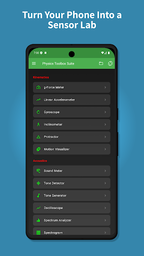 在基础科学教育、学术、工业界都非常实用的一款软件!它使用设备自带的传感器,可以收集、记录数据并使用常见的逗号分隔符(csv)文件格式导出数据。数据随后即可进行处理绘图,或是将数据导入演算表文件中。除此之外,本应用还可以产生声调、颜色和频闪闪光。请浏览 www.vieyrasoftware.net 了解更多在基础科学领域应用的点子和实例。<br><br>在应用的侧边栏中可以从下列列表中选择传感器或者信号发生器(具体取决于用户设备的支持能力):<br><br><b>传感器</b><br><br>(1) G力计 - Fn/Fg 的比值(x、y、z轴方向和总加速度)<br><br>(2) 线性加速度计 - 加速度(x、y、z轴)<br><br>(3) 陀螺仪 - 角速度(x、y、z轴)<br><br>(4) 气压计 - 大气压力测量<br><br>(5) 过山车 - G力计、线性加速度计、陀螺仪和气压计<br><br>(6) 湿度计 - 相对湿度<br><br>(7) 温度计 - 测温<br><br>(8) 接近传感器 - 周期性动作及计时器(包括计时器模式和摆模式)<br><br>(9) 尺子 - 两点间距离<br><br>(10) 高斯计 - 磁感应强度(x、y、z轴及总和)<br><br>(11) 罗盘 - 磁场方向<br><br>(12) GPS - 经纬度、海拔、速度、方向、卫星数量<br><br>(13) 倾斜计 - 方位角、翻滚角、俯仰角<br><br>(14) 光强计 - 光照强度<br><br>(15) 声强计 - 声音强度<br><br>(16) 音调探测计 - 频率和音乐音调探测<br><br>(17) 示波器 - 波形和相对振幅显示<br><br><b>多传感器</b><br><br>(18) 多传感器共同记录<br><br><b>信号发生器</b><br><br>(19) 声调发生器 - 产生特定频率的声音<br><br>(20) 颜色发生器 – R/G/B/Y/C/M, 白色或者自定义颜色的屏幕显示<br><br>(21) 频闪发生器(测试中) - 照相机闪光灯闪烁<br><br>在多传感器记录中,用户可以自行选择一个或多个传感器同时收集记录数据。文件在导出之前可以重命名,或者保存在设备存储中以便后续使用。<br><br>另外还有额外功能,例如和当前时间或相对时间一起记录数据、选择 CSV 文档分隔符格式、改变图标线条宽度、修改传感器信息搜集速率和屏幕常亮等等。