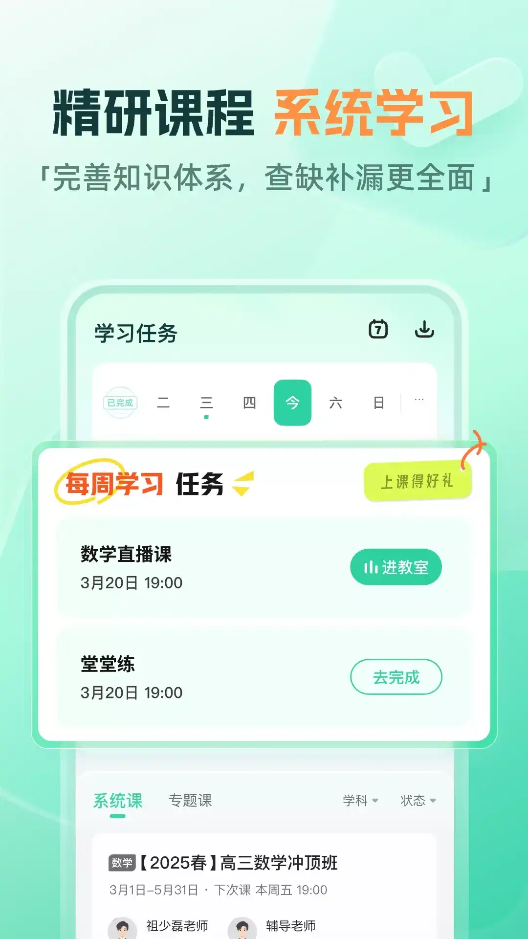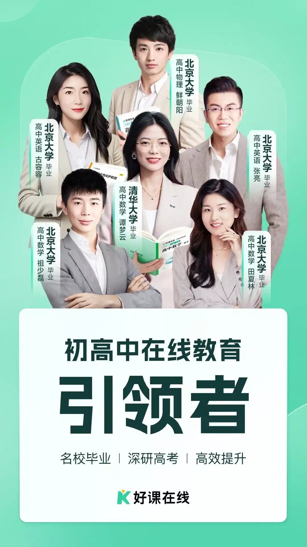 【关于我们】 好课在线是一款专业的学生课堂学习类软件,致力于帮助用户更轻松地在线学习,提供优质的教学产品和服务,包含互动网课、智能练习、能力培养等多元化的智能教育服务等,让学生系统性、高效率的学习进步。 【师资力量】 好课在线严选师资,汇集清华北大毕业的名师,在线辅导,讲授提升大招,严选磨课内容,提升授课效果;主推双师教学,主讲老师+辅导老师全程伴学,定期反馈孩子学习情况,及时对学习问题答疑解惑。 【教学范围】 好课在线APP涵盖了数学、物理、化学、语文、历史、生物、政治等多个学科的课程,更有多元学习资料、视频内容、学情分析工具等多方位满足学生及家长用户的学习需求。 【大招课程】 课程内容直击校内重难点,适应新课改,学习不盲目;课前摸底测评诊断学情,定制专属学习计划;课中大招解题精讲,一招解决一类题;课后学习报告追踪,高效备考,提升更容易。 【意见反馈】 如您在使用过程中,有任何问题和意见,请在app内点击我的-问题反馈进行反馈。 【好老师,有大招,提升快,效果好,加入好课在线,让您学习更高效!】