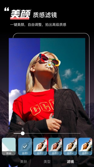 适合你的拍照神器重磅来袭,美颜滤镜功能专属升级,每个人都能找到属于自己的美颜模式。 实时预览美肤程度,为自己预设属于自己的美颜效果,瘦脸、美白、大眼等一键保存。 简单操作,轻松上手,给你完美容颜,尽情拍拍拍~ 1.五官立体:深邃大眼、高挺鼻梁、立体V脸一秒拥有! 2.磨皮美白:让皮肤白皙透亮,打造零毛孔美肌,效果超乎想象! 3.瘦脸瘦身:手指滑一滑,立刻优化脸型,想瘦哪就瘦哪! 4.祛斑祛痘:不做“豆”花妹,手指点一点,斑点、痘痘都退下! 5.美化眼睛:放大眼睛,加亮眼部轮廓,瞬间拥有混血儿般立体双眸! 6.淡化黑眼圈:熊猫眼走开! 熬夜晚睡照样美!