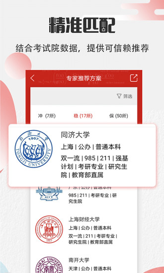 高考志愿填报APP----这是一款专为高考考生打造的应用,旨在帮助您更加轻松地填报志愿。 我们的APP提供了全 面的高校信息,包括学校介绍、专 业设置、招生计划等,让您可以更加全 面地了解每所高校的情况。同时,我们还提供了智能匹配功能,根据高考成绩和兴趣爱好,为您推 荐适 合的高校和专业。 在填报志愿过程中,我们还提供了详细的填报指导,让您可以更加顺利地完成填报。同时,我们还提供了志愿优化功能,帮助您提高录取概率。 我们的app界面简洁明了,操作简单易懂,让您可以轻松地完成志愿填报。同时,我们还提供了实时更新的高校信息和招生计划,让您随时了解高校情况。