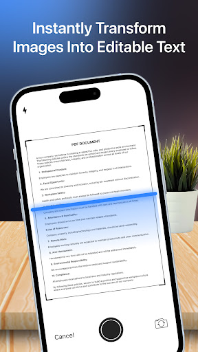 您需要便携式图像到文本转换器吗?现在,Cam Scanner 可以帮助您将手机变成智能扫描仪,以便在各种情况下,尤其是工作和学习,从照片或文档(收据、笔记、发票、白板讨论、名片、证书等)中以有组织的布局拖出文字。<br><br>Cam Scanner 是一款非常适合将打印文档自动转换为可编辑文本的工具,适用于所有 Android 手机。它在扫描和数字化书籍、杂志或照片中的文字方面非常出色。您会惊讶于该应用程序的速度和准确度!凭借尖端的 AI OCR(光学字符识别)技术,Cam Scanner 以极高的准确性从不同语言的图像中识别字符。<br><br>拍照或从相册上传图像进行扫描时,您可以裁剪某些部分以突出显示您需要转换到文本中的文字。我们还提供高级图像编辑工具,包括智能裁剪、旋转、排序、滤镜等。<br><br>Cam Scanner 对于商业和学习都是相当高效的生产工具,它支持将多个图像扫描到一个文件中,这使得在学校课程或商务会议中做笔记变得更快速有效。它是快速记录写在黑板或幻灯片上的备忘录的最佳应用,能将您从麻烦的逐字记录中解放出来。<br><br>特色优势<br>- 高准确率<br>- 快速扫描<br>- 支持多达 50 种语言<br>- 适用手写,包括草书<br>- 以PDF/text/JPG等格式保存在本地或分享到其他应用程序<br><br>请注意,模糊的图像会导致准确性降低,因此请尽量确保原始文件尽可能清晰。