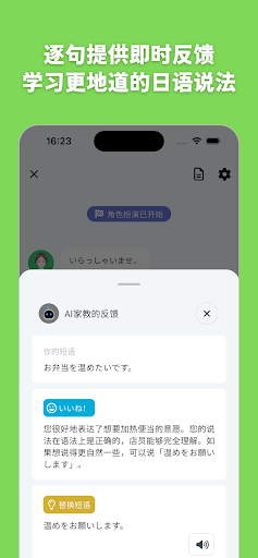 “想让日语会话更流利?” “想一次就考过日语能力考 JLPT?”<br>你的专属 AI 日语家教“Meshclass”就是你的最佳答案!<br><br>告别死记硬背的学习方式!Meshclass 通过 AI 互动,让你从“口语”、“听力”到“写作”全面进步,真正自信地使用日语。无论是零基础初学者还是高阶学习者,都能找到最适合你的学习路径。<br><br>【Meshclass 的强大功能】<br><br>💬 24 小时 AI 口语家教<br>随时与各种个性的 AI 角色畅聊,进行口语练习。在完全零压力的环境中,培养最真实的日语对话感,再也不怕开口!<br><br>✈️ 超实用情景角色扮演<br>从旅游日语、商务会议到和朋友聊天,在各种生活情景中进行角色扮演。将学到的单词和语法用在对话中,让学习更贴近现实、更有效率。<br><br>🗣️ 即时发音与语法反馈<br>不只开口说,更要说得地道!AI 会在你每说完一句话后,即时提供发音和语法反馈,并建议更自然的说法,帮助你掌握母语者的语感。<br><br>🧠 个性化智能复习课程<br>AI 会根据你的对话记录,自动分析你较弱的单词与语法,为你量身打造专属复习课程,高效巩固所学,不再忘东忘西。<br><br>📈 JLPT N5-N1 全攻略 (超过 6000 题)<br>攻克日语能力考!我们提供超过 6000 道模拟试题,全面涵盖 N5 到 N1 等级的单词、汉字、语法与听力。AI 还会针对你的解答提供详细解说,助你轻松通关。<br><br>✍️ 动手写汉字,加深永久记忆<br>动手写,才记得牢!我们的 AI 会即时批改你的手写笔顺、字形与平衡,用最有效的方式,帮助你牢记每个汉字的正确写法。<br><br>📊 学习进度可视化,保持学习动力<br>亲眼见证自己的日语能力每天都在成长!通过清晰的图表追踪学习进度,让你保持专注与热情,一步步朝着流利的目标迈进。<br><br>准备好开始你的高效日语学习之旅了吗?<br>立即下载 Meshclass,让你的 AI 家教带你踏上流利之路!