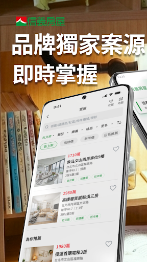 信义房屋|关于家的每一个重要决定<br> <br>找房,不只是找一个空间,<br>而是为家人找一个安心生活的地方。<br> <br>信义房屋 App,结合线上科技与真诚服务,<br>陪你从第一个想像开始,<br>一步步,走到真正属于你的家。<br> <br>你可以用它做到的事<br> <br>【在家,就能看懂一间房】<br>・3D 与全景赏屋,不到现场也能理解空间配置<br>・线上量尺,快速掌握室内尺寸与动线<br>・2D / 3D 切换,房屋结构一看就懂<br> <br>【找到真正适合的安心房源】<br>・品牌独家案源,不重复刊登,每一间都经过产调把关<br>・新物件与降价即时通知,不错过关键时机<br>・多条件与地图订阅,锁定你在意的生活圈<br> <br>【从找屋到成交,都有人在】<br>・线上选择经纪人,即时咨询<br>・一键预约看屋,行程纪录集中管理<br>・看屋后资讯完整保留,方便比较与家人讨论<br> <br>【买屋、卖屋,都要顾好】<br>・买屋流程清楚可查,进度金流一目了然<br>・屋主专区即时回报销售状况<br>・掌握相似物件市场热度,卖屋更安心<br> <br>关于家的重要决定,<br>希望能以真诚的资讯与服务,<br>和你一起完成。