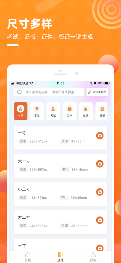 【产品介绍】 一寸照片生成器,你的手机照相馆! 随时随地都可以拿起手机进行拍摄证件照,免费保存底片到相册,同时我们还有邮寄功能,让你足不出户就拿到美美的证件照。 特色功能 【强大的人脸识别技术】 自动实现完美扣图;超级强大的图像处理算法;抠背景取人像,连发丝效果都完美无损;是业界目前最强大的抠图技术。 【最美颜值】 自然美肤美颜的算法,美白、美肤、换背景,制作完美证件照,就是那么简单。 【尺寸齐全】 最齐全的证件照规格,一寸照、二寸照、身份证、宝宝证件照、学生证件照、工作证件照各国签证照…