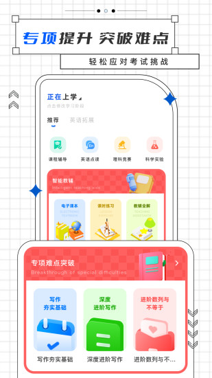 国家教育云是一款专注研发小学、初中、高中数学、奥数、物理、语文、化学、英语、历史等同步课程,将内容与AI结合,帮助学生实现智能化学习体验!授课采用轻松、有趣的动画视频,结合老师风趣、易懂的讲解方式,让知识不再难学! 【中小学辅导,功能更强大】 1.课程同步校内教材:小初高数学、物理、语文、化学这里都有,同步校内课本教材,单个知识点一一讲解,满足不同阶段学生学习需求,复习、预习、考试、日常学习。 2.动画授课,爱学易懂:精编设计动画特 效,让知识生动直观更好理解,引入生活常识,知识点来龙去脉详细讲解,抽象概念一学就懂! 3、3分钟精要知识点短视频,讲解均来自国内名师,直击要点。从此,难题不再难,你也可以当学霸;