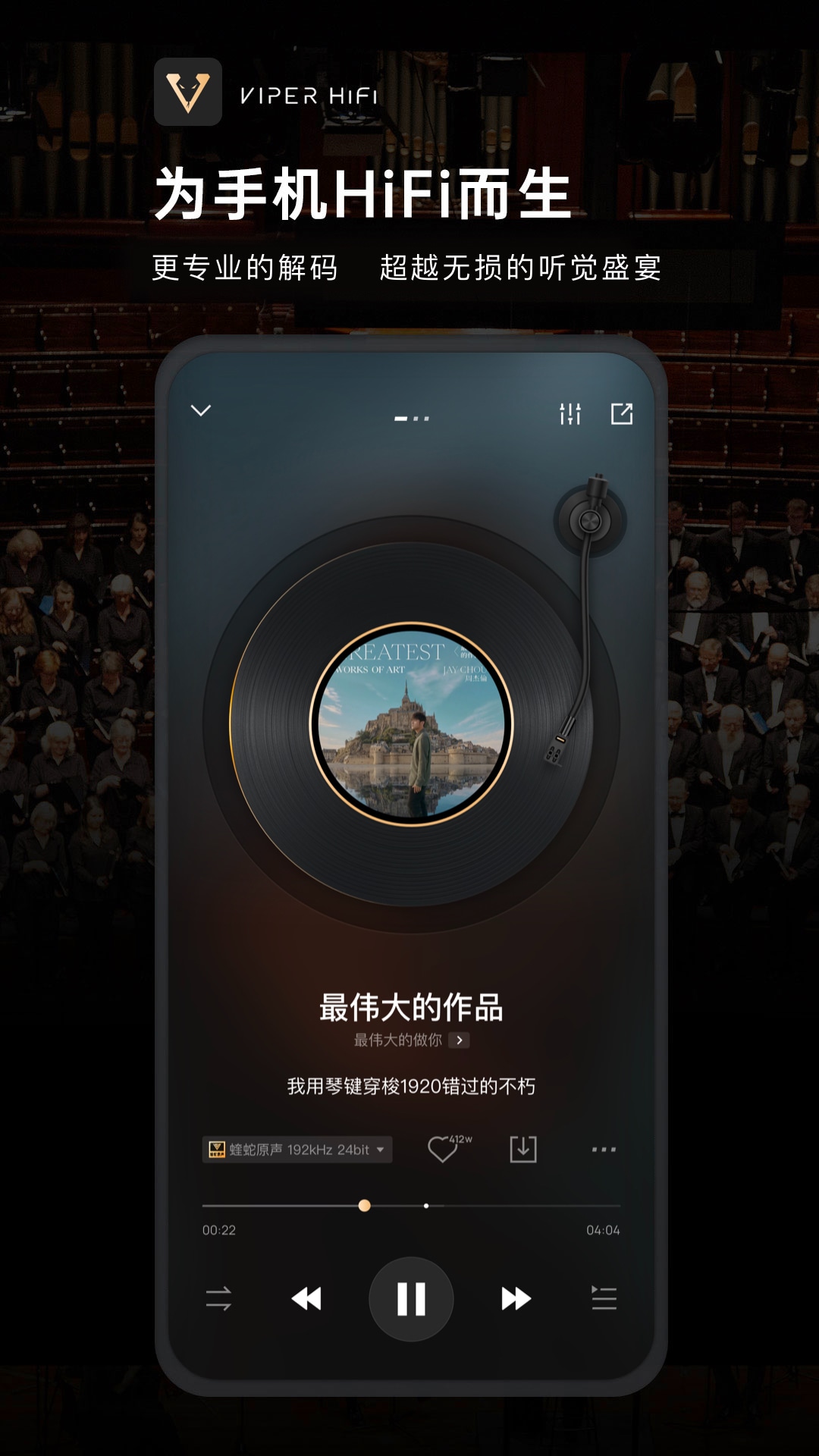 一款为HiFi而生的音乐播放器,腾讯音乐匠心打造!百万发烧友力荐,追求手机+HiFi的便携听音新方式,是优质爱好者的线上聚集地。 更专业的解码,精准还原无损音质。千万级HiFi曲库伴你免费畅游音乐海洋,是你开启HiFi之旅的不二选择。 产品特性介绍: 【简洁无广】播放体验焕然一新,界面纯净无广告 【臻享发烧音质】1000W+ Hi-Res曲库、DSD、蝰蛇原声母带级音源,纵享细致入微的音乐细节。 【千万级免费曲库】无损音质金曲任你听,大牌/经典/发烧名盘/各种流派专辑等你探索~ 【超大音乐云盘】1T大容量,存你所爱!更可绑定百度网盘,一键转存音乐资产。 【内容专业多样】每日臻选专业/热门/发烧领域的音乐内容,多维度收获更多好歌,彻底告别歌荒!更有HiFi干货资讯,和发烧圈零距离接触~ 【专业播放】USB独占源码输出、支持多种格式播放、EQ均衡均衡器......便携又好用,专业不含糊! 【更多玩法】一键Hi-Res煲机、DLNA投播、NAS云储存、听歌识曲、烧er社区,多种超“哇塞”硬核功能供你玩转HiFi。 【福利满满】不定期福利大放送,免费会员领不停。 专业特性介绍: 1.支持多格式播放:dff、dsf、dst、iso、wav、ape、flac、flac、m4a、wma、ogg、aac、amr、aiff、mp3等。 2.支持32位输出,解码精度高。 3.支持CUE文件。 4.支持外接USB声卡,支持DXD,Dop,DSD源码输出。 现在下载更可享受“签到领会员”、“1元首开会员”等新人重磅福利。 快来体验吧~我们Viper HiFi见!~