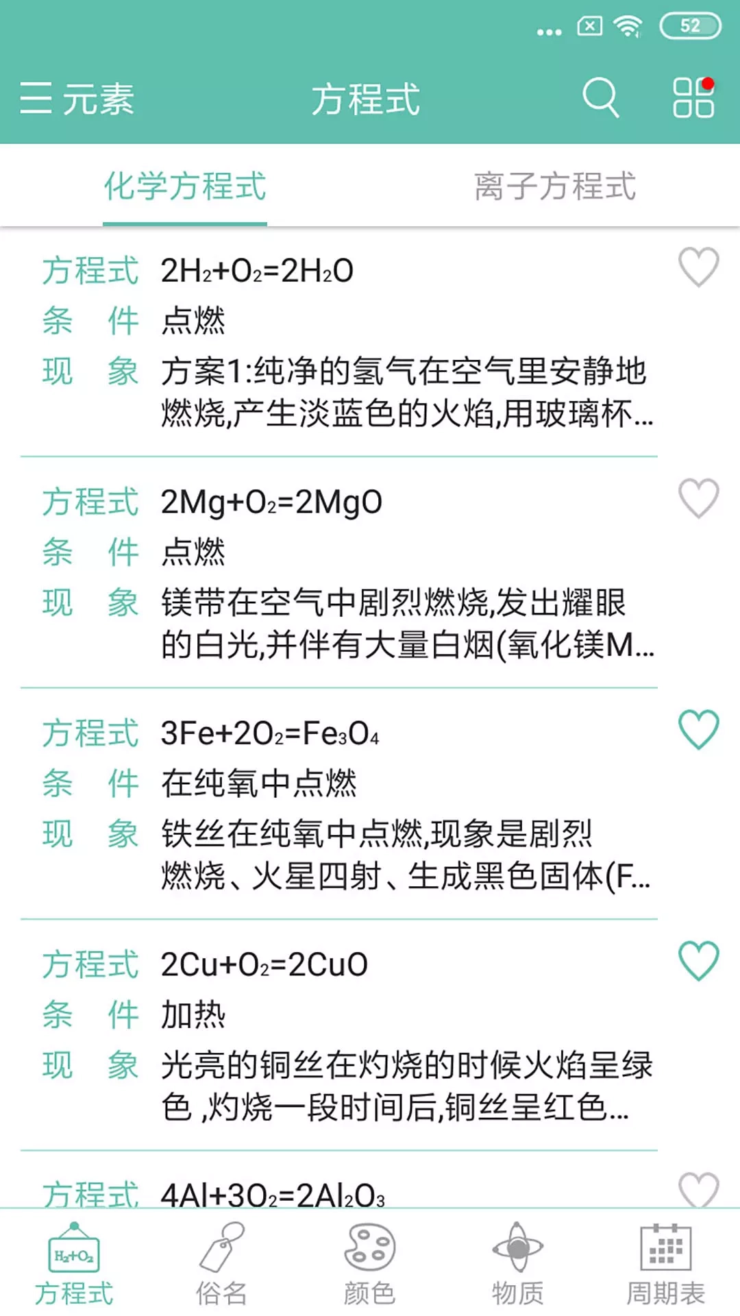【软件简介】 化学方程式软件是为从事化学专业的用户开发的一款化学工具软件。化学方程式首页包含元素周期表、物质、方程式等模块。各模块循序渐进,相辅相成,可以更快速、全面的帮助用户提高对化学知识的理解;同时化学方程式具有查询方便、数据齐全、知识面广、连贯性强、讲解深入等特点,一直以来深受广大用户的一致好评。 【软件特色】 特色1:包含初高中教材中所有与方程式相关的知识点。 特色2:包含各省市历年与方程式相关考题的解说。 特色3:包含大学化学教材中的大部分基础表格数据。 特色4:包含丰富的化学工艺。 特色5:显示友好,查询方便。 特色6:数据持续完善、错误率极低。 【作者寄语】 化学是一门很神奇的学科,我们生活中的方方面面都离不开化学,化学的魅力之处在于她能够解释清楚我们所处环境中的各种现象与本质。希望本软件能够一直伴随大家的学习和工作生涯,本软件也将始终致力于“为大家提供便捷齐全的化学查询工具”为宗旨,持续丰富本软件的功能和数据。让我们携起手来,一起探索、共同进步! 【联系方式】 客服微信:benhs2017 客服邮箱:feedback@benhuisen.com