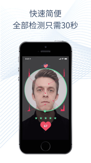 For Investigational Use Only 心魔镜 是基于情感人工智能的移动设备应用程序,它仅使用手机摄像头就能评估您的健康状况。通过30秒的视频自拍,心魔镜简洁版现在能提供多种生理和心理状况评估结果,包括: • 心率 • 不规则心跳 • 呼吸率 • 心率变异性 • 心理压力 • 体重指数(BMI) 功能及优势: •完全非接触式----无需任何传感器或穿戴式设备、也无须任何接触,健康评估就像自拍一样快捷! •快速----实时心率数据仅需5秒,全面健康评估仅需30秒。 •隐私保护----您的血流信息经过加密发送到我们的云服务器进行分析,并使用银行级加密技术存储您的测量历史。在评估过程中,您的视频图像不会被保存。 •经常使用心魔镜简洁版可提高您对身体健康及心理压力的认知。 •免费----最重要的是,心魔镜简洁版完全免费使用! 心魔镜简洁版并不能代替医疗专业人员的临床判断。心魔镜简洁版旨在提高你对自身整体健康状况的认知。如果您认为您可能有健康问题,请咨询医疗专业人员或前往医疗机构。 如欲了解更多有关心魔镜简洁版信息。请访问:www.anura.com.cn