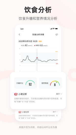 【 实时动态血糖监测记录】 不用扎手指,即可实现实时持续记录葡萄糖数据和变化趋势。您可以实时查看当前的葡萄糖数据以及预测您的血糖变化趋势,方便您及时调整应对。 【 个性化血糖分析报告】 佩戴CGM期间,可查看每日血糖总结,包含当日趋势图、血糖达标率血糖波动水平等。 佩戴CGM满5天,即可生成动态血糖图谱(AGP)图谱,动态血糖图谱(AGP)是国内外指南一致推荐的持续葡萄糖监测(CGM)的标准化葡萄糖监测报告,反映您的血糖水平和血糖波动水平,能更好地指导你控制血糖。 另外,设备结束监测后会自动生成动态血糖报告,里面包含控糖红绿灯,数据一目了然,糖友也能快速读懂自己的血糖控制情况。 【小诺健康助手】 覆盖饮食摄入,运动打卡,用药记录,通过专业的智能数据解读,让健康管理更高效更省心。 【爱看互联同步】 接入华为运动健康和苹果健康数据,将健康指标关联血糖分析,让健康管理更全面。 【专业控糖服务】 专业医护团队24小时在线,如果你有控糖和健康方面的疑问,可以随时在线咨询。 【免责申明】 爱看健康应用程序内健康资讯、建议、方案仅供参考,但不作为诊断、确诊和治疗依据,也不成为任何享有法律效力的书面证明文件,不能代替医生面诊和医院诊断。具体治疗建议请遵循医嘱!