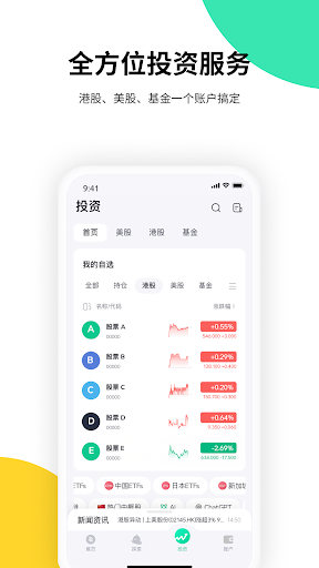 富途牛牛是富途证券独家采用的报价及投资交易软件,接入富途证券后,其可覆盖港、美、日、A股及新加坡股主要股票市场以及多元金融产品。所有设备均适用。提供报价,最快0.0037 秒极速落单。<br><br>立即下载富途牛牛,体验一站式投资交易平台,交易从此更快更方便!<br>富途牛牛是富途控股旗下的投资 App,覆盖港美股股票市场以及多种金融产品,手机、平板电脑、电脑均适用。同时提供 24 小时无间断全球财经专业资讯、全港最大投资社区牛牛圈、即时报价、全方位数据技术分析、多种实用投资功能,为你的投资保驾护航!<br><br>【为何选择富途交易? 】<br>1. 全港最大:富途控股于美国上市,为香港NO.1科技券商*,每两个成年人就有一人用富途^。<br>2. 费用低廉:港股一世免佣,享0息银行融资抽新股,美股低至$0.0049/股。<br>3. 极速开户:最快3分钟线上开户,登记银行eDDA,存款最快只需5分钟。<br>4. 奖励丰富:新人享高达千蚊迎新奖赏,送指定股票或礼券。<br>5. 报价行情:提供免费港股LV1实时报价、美股LV2 60档实时行情任你睇。<br>6. 投资种类齐全:港股、美股、日股、A股、新加坡股、期权、期货、ETF、债券、基金、杠杆式外汇等。<br>7. 首家5x24美股交易:不受交易时间限制,有消息提前一步部署,快速捕捉股票升幅机会。<br>8. 统一购买力:综合帐户资产计算,提高资金使用效率,一笔钱不受货币本金限制,投资多个市场。<br><br>【实用投资功能】<br>特色榜单:提供高股息、热议榜等,轻松筛选优质收息股,热门升幅股,捕捉住投资机会。<br>机构持仓:提供巴菲特等明星大行持仓仓位、持仓历史走势等,追踪机构动向做投资。<br>市场资讯:7x24小时实时更新市场资讯,把握投资最新消息,市场反应快人一步!<br>走势预测:AI预测个股未来走势,提前把握升降趋势,投资决策更容易。<br>画线工具:45+易用画线工具,根据行情走势中画出k线型态,更好预测未来价位走势。<br>产业链:热门行业弹起时,提早找出其上下游的潜力股,早着先机。<br>止盈止损订单:提前设定止盈、止损位,到点自动交易,降低投资风险。<br><br>【专业分析工具】<br>资金分布:掌握流入或流出资金订单量,从而推断市场上的资金动向、明确当日好淡强势程度。<br>卖空数据:即时了解股票卖空异动情况、卖空数量,了解潜藏风险或机会。<br>筹码分布:一Click睇清压力位、支撑位、平均价位,分析持仓成本,助你作出投资决策。<br>大行评级:透过分析师预测的目标价判断现时入市是否水位过高或卖出获利的时机。<br>财务解读:经营数据、财务指标、财务预测、公司估值等历史表现,分析公司投资价值。<br>期权分析:提供波动率分析、期权损益图、期权行权概率等全面的期权数据,便于投资者精准决策。<br><br>【2600万+用户的投资者社区】<br>实盘交流:最大的实盘交流社区,分享投资心得及经验。<br>热度话题:覆盖市场热点、财报解析、交易经验等话题,提供多维投资视角。<br>权威进驻:1000+企业、机构、财经KOL进驻。 800+企业管理层管直接发布第一手消息,避免信息不一致。<br>与管理层互动:定期举行线下活动,与行业专家及管理层面对面接触交流,掌握最新行业走势及资讯。<br><br>【专业投资课堂,优质客户服务】<br>投资课程:多种专业投资课程,定制化学习计划,供用户轻松上手。<br>客户服务:交易日24小时真人线上服务,提供线上查询投资服务<br>用户反馈:关注用户使用体验,开放用户提供反馈,及时升级产品。<br><br>一世免佣优惠受开户条款及细则约束。<br>投资涉及风险,需小心谨慎!<br>*全港最大科技券商是指富途作为全线上服务的证券商,以证券成交量、客户托管资产量、APP下载量及活跃用户量统计均是全港排名最高。<br>1. 港股成交量数据来自AiPO网站2024年第三季度综合成交排行榜计算,富途证券为2024年第三季度香港线上券商港股成交量第一。<br>2. 客户托管资产量数据取自中央结算及交收系统( CCASS )于2023年12月30日零售券商(由证券及期货事务监察委员会所监察)参与者的托管资产规模,再经由富途计算所得出的“按持股市值”之排名。数据显示富途证券于CCASS 排名第16名,为证劵商类别排名第一。<br>3. 下载量数据来自 data.ai(原App Annie),富途牛牛是 2024年第三季度在iOS和Google Play中香港下载量排名第一的股票交易应用程式。<br>4. 活跃用户量数据来自 data.ai(原App Annie),富途牛牛是 2024年第三季度年在 iPhone 和Android 手机上按日平均活跃用户数 (DAU) 计算的香港排名第一的股票交易应用程式。<br>^「每两个成年人就有一人用富途」是指富途牛牛香港注册用户数约占香港成年人口二分之一。富途香港用户数据来自2024 Q4富途财报,香港成年人口数据是按2024年香港政府统计处披露的人口数据统计。<br><br><br>【联络方式】<br>有任何问题,请通过以下方式联系我们:<br>官网:https://www.futuhk.com/<br>客户服务专线: +852 2523 3588<br>Facebook: 富途证券 Futu Securities<br>微信公众号:FUTU<br>公司地址:香港金钟金钟道95号统一中心34楼全层<br><br>【订阅说明】<br>1)订阅服务<br> 港股LV2实时行情<br> 港股期权期货LV2行情<br> LV2+期权期货LV2行情<br> 港股高级全盘行情<br> NASDAQ TotalView<br> NYSE OpenBook<br> 全美综合报价<br> 美股期权实时行情<br> 美股期权深度行情<br> 新加坡期货LV1即时行情<br> 新加坡期货LV2高级行情<br> 新加坡股票LV1即时行情<br> 新加坡股票LV2
