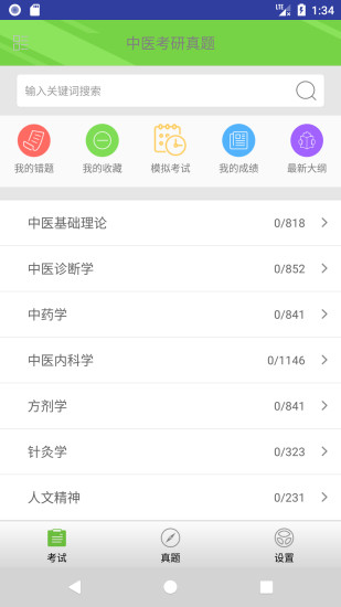 考研必题库——考研历年真题资料平台,包含考研统考各科目真题试卷,包含各高校各专业齐全的历年考研真题试卷。 考研统考科目专项练习:包含考研政治、考研英语一、考研英语二、考研数学一、考研数学二、考研数学三等科目各章节的专项练习,支持在线做题; 考研政治专项练习:包含考研政治科目各章节的专项学习; 考研英语专项练习:包含考研英语完形填空、阅读理解、新题型、翻译、英语小作文、英语大作文等专项练习; 考研数学专项练习:包含考研数学下的高等数学、线性代数、概率论与数理郭张庄等专项练习; 考研统考真题试卷练习:包含考研政治、考研英语一、考研英语二、考研数学一、考研数学二、考研数学三等科目历年的真题试卷练习,支持在线做题; 考研数学必背公式:包含考研数学一、考研数学二、考研数学三等科目的数学常考公式,并配有公式用法的指导点拨; 考研院校库:包含国内各院校、各专业的历年真题试卷,支持文件下载; 收藏功能:目前支持试卷、题目、公式的收藏; 错题功能:针对在线练习的错题自动标注,方便整理自己的错题集。
