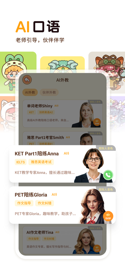 Tuter是一款创新的背单词学习应用,以其智能互动对话教学方式为特色,让你不再在乏味的单词记忆中苦苦挣扎,让背单词变得轻松有趣、科学高效。仿佛有一位真实的老师在你身边,在你需要帮助的时候,提供精准的辅导,回答你的所有问题。无论你是刚接触英语的小白,还是追求深入英语学习的进阶者,Tuter都能成为你的理想英语学习工具。 为何选择Tuter? 『仿真教师互动』 Tuter的强大之处在于能够模拟真实的英语教学互动。通过智能语音和交互手段,配合各级别学习需求,提供适宜的听说训练。由此,强化你的单词记忆力,同时提升你实际应用英语的能力。 『海量单词课程』 Tuter贴心地包含了从小学、中学,到四六级、考研,以及雅思、托福等主流词书。150+的词书种类,将各类级别的学习需求一网打尽。 『听说练习重点』 与其它单词app不同,Tuter在背单词的同时,注重听力和口语的训练。通过与虚拟老师的对话练习使你的学习更贴近生活,更贴近真实沟通。 『个性化学习』 Tuter允许你自定义学习内容,使你的学习计划更具个性化。同时,Tuter会根据你的学习进度和情况,定制个人化的每日复习计划。 『进度跟踪』 学习的过程就是进步的过程。Tuter内置的学习进度跟踪系统能为你反映出每一个小步骤的进步。 『学习成就挑战』 我们知道学习容易让人感到枯燥,因此Tuter设计了成就挑战系统。在你完成一个个小目标的同时,更多的课程内容也将被你所解锁,背单词再也不是枯燥的事情。 我们坚信学习英语应该是一个愉悦并且高效的旅程。而Tuter,正是利用其先进的智能互动对话教学技术,让每一次的学习像是和专业的老师面对面的交流,不断提升你的听力和口语技能。赶快来体验这种全新的学习模式,让你的英语学习更加生动,效果更佳。 立刻下载Tuter,开始你的智能英语学习之旅吧! 「Tuter订阅说明」 1.用户协议 https://terms.particlethink.com/tuter-users-zh.html 2.隐私条款 https://terms.particlethink.com/tuter-privacy-zh.html 3.Tuter连续订阅服务有以下产品: 订阅周期: a、连续包月;价格以应用内商品页为准。 b、连续包年;价格以应用内商品页为准。 4.订阅Tuter会员服务会通过iTunes账户直接支付 5.在订阅服务到期前24小时,系统将按订购类型进行自动续订和扣除相应费用 6.如需关闭连续包月服务,请至少提前24小时在“账户设置”中进行操作