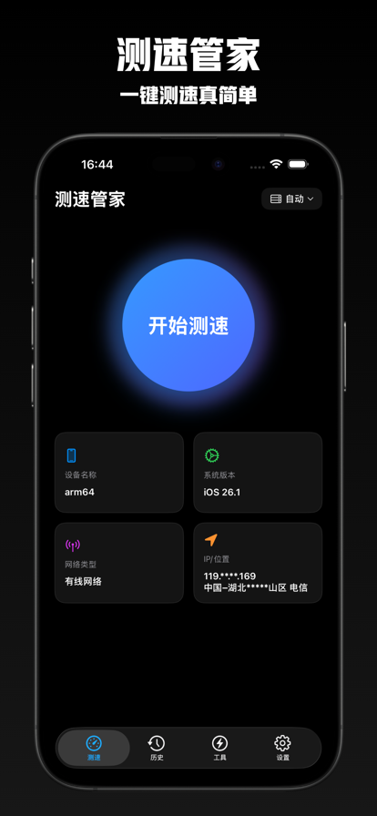 测网速网络工具是一款简洁易用的网络工具,旨在帮助您快速了解当前的网络连接性能。我们提供准确的测速数据和清晰的测试历史,让您对网络状况了如指掌。 【应用功能】 一键精准测速 快速测试当前的下载与上传速度。 实时显示您的网络连接类型(如 Wi-Fi 或 5G)及信号强度。 全面的网络分析 延迟 (Ping) 测试:测量您设备到服务器的响应时间,了解网络延迟情况。 连接稳定性评估:通过多次测试,帮助判断网络连接的稳定性。 清晰的历史记录 自动保存每次测速结果,方便您随时回顾和比较不同时间、地点的网络表现。 网络信息查看 显示您设备的当前 IP 地址等基本连接信息。 【我们无法做到】 为保持描述的绝对真实,我们明确告知:本应用主要用于测量和显示网络性能数据,无法直接修复或优化您的物理网络环境(如运营商信号覆盖问题、路由器硬件故障等)。 感谢您的选择!我们持续优化,为您提供可靠的工具。