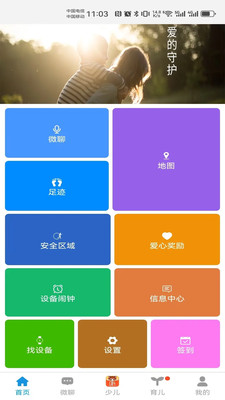 1 对讲:APP 可以录音并下发给设备,设备也可以录音下发给APP 2 地图:APP 可以查询设备的最后位置并在地图上显示出来,可以查询设备的实时位置 3 健康: APP 可以查询设备的历史运动情况,统计结果 4 足迹: APP 可以查询设备的历史轨迹 5 安全区域:app 可以设置围栏,当设备从围栏内部到围栏外部时,APP 将收到提示信息 6 信息中心: 设备低电量提醒,出围栏提醒 7 手表闹铃:APP 设置设备的闹铃时间 8 找手表: APP 下发指令后,设备将响铃 9 爱心奖励: APP 下发指令后,设备上显示爱心 10 设置: APP 可以设置 SOS/亲情号码,设备工作模式,上课禁用等
