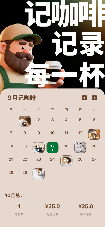 记录每一杯咖啡 「记咖啡」让你轻松记录每次饮用的咖啡,包括 种类(美式/拿铁/手冲等)、品牌、冷热、糖分、价格,让你的咖啡习惯一目了然。 智能月度账单 & 消费分析 自动生成 月度消费报表,清晰查看你的咖啡开支趋势,帮你找到最爱的咖啡品牌,优化消费习惯,省钱又省心! 简洁易用,快速上手 极简设计,3秒完成记录,所有数据云端同步,换设备也不丢失。 适合谁用? 咖啡爱好者,想了解自己的咖啡消费习惯 想控制每日/月咖啡开支的打工人 喜欢尝试不同品牌和口味,希望记录偏好的人 立即下载「记咖啡」,开始你的咖啡记账之旅!