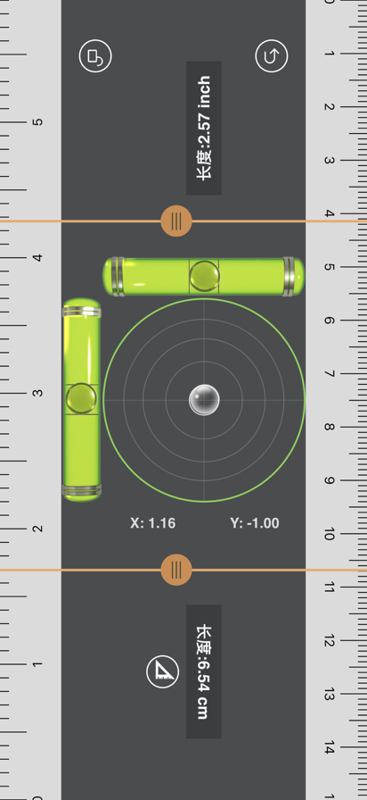 ----十年打磨,精益求精---- √ 尺子、水平仪、量角器、噪音计、指南针,测网速 √ AR尺子、AR指南针、挂物矫正、十几种单位换算 √ 辅助SOS手电筒、镜子、收藏各种测算结果、截图分享 √ 全系列iPhone、iPad精确刻度、分毫不差! 1.尺子水平仪:测量长度水平校准,支持公制、英制、英寸..十几种单位换算, 2.AR尺子:更改测量单位、面积、长度单位换算、收藏截图快速分享, 3.噪音计:通过手机检测周围声音分贝, 4.量角器:获取物体角度的小工具,通过相机拍摄测量, 5.挂物校准:快速查看家中挂件是否齐整的小工具, 6.指南针:快速精准定位、支持经纬度、海拔、气压单位换算,更有全新的AR定位方式! 9.网速测量:快速测量网络速度,IP地址,电信运营商, 8.手电筒:开启手机灯光,SOS灯光,亮度调节记忆,无法衔接辅助测量拍摄。 欢迎使用 您的支持与反馈,是我们不断前进的动力! 使用条款(Terms of Use / EULA): https://www.apple.com/legal/internet-services/itunes/dev/stdeula/ 隐私政策(Privacy Policy): https://www.orayk.com/user-privacy