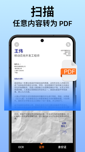 OCR 扫描仪:PDF 阅读器是一款功能强大的文档扫描和管理应用程序,可将您的智能手机或平板电脑变成便携式扫描仪。使用 OCR 扫描仪,您可以随时随地轻松扫描、存储和共享所有重要文档、收据和笔记。无论您是忙碌的专业人士、学生,还是只想整理生活的人,OCR 扫描仪都能满足您的所有需求,简化您的工作流程,让您掌控一切。<br>以下是 OCR 扫描仪的一些主要功能:PDF 阅读器:<br>轻松扫描文档<br>使用 OCR 扫描仪,您可以轻松扫描各种类型和大小的文档。该应用程序采用先进的图像处理算法,确保您的扫描件始终清晰锐利且易于阅读。您甚至可以将多页文档扫描成一个 PDF 文档,从而轻松存储和共享文档。<br>OCR<br>OCR 扫描仪采用先进的 OCR 技术,可将扫描的文档转换为可编辑文本。这意味着您可以轻松地将扫描文档中的文本复制并粘贴到其他应用程序中,例如电子邮件或文字处理软件。<br>合并<br>将 PDF 和图像文件 (JPG/PNG/BMP/TIFF) 合并为一个紧凑的 PDF 文件,方便共享、存储或发送审阅。<br>拆分文件<br>将 PDF 拆分为更小的文件以减小其大小。我们的 PDF 拆分器还允许您提取特定页面。<br>云存储集成<br>OCR 扫描仪集成了 Google Drive、Dropbox 和 OneDrive 等热门云存储服务。这意味着您可以随时随地轻松存储和访问扫描文档,并在需要时与他人共享。<br>用户友好的界面<br>OCR 扫描仪拥有用户友好的界面,即使是初学者也能轻松上手。该应用程序设计直观易用,并提供清晰的说明和实用技巧,引导您完成扫描过程。